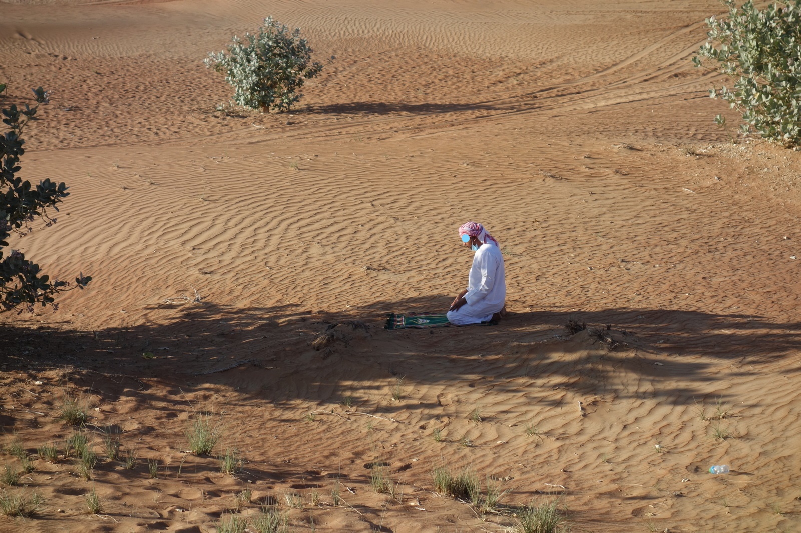 Das unser Fahrer die Zeit jetzt nutzt, seinen Gebetsteppich auszurollen und gen Mekka zu beten,