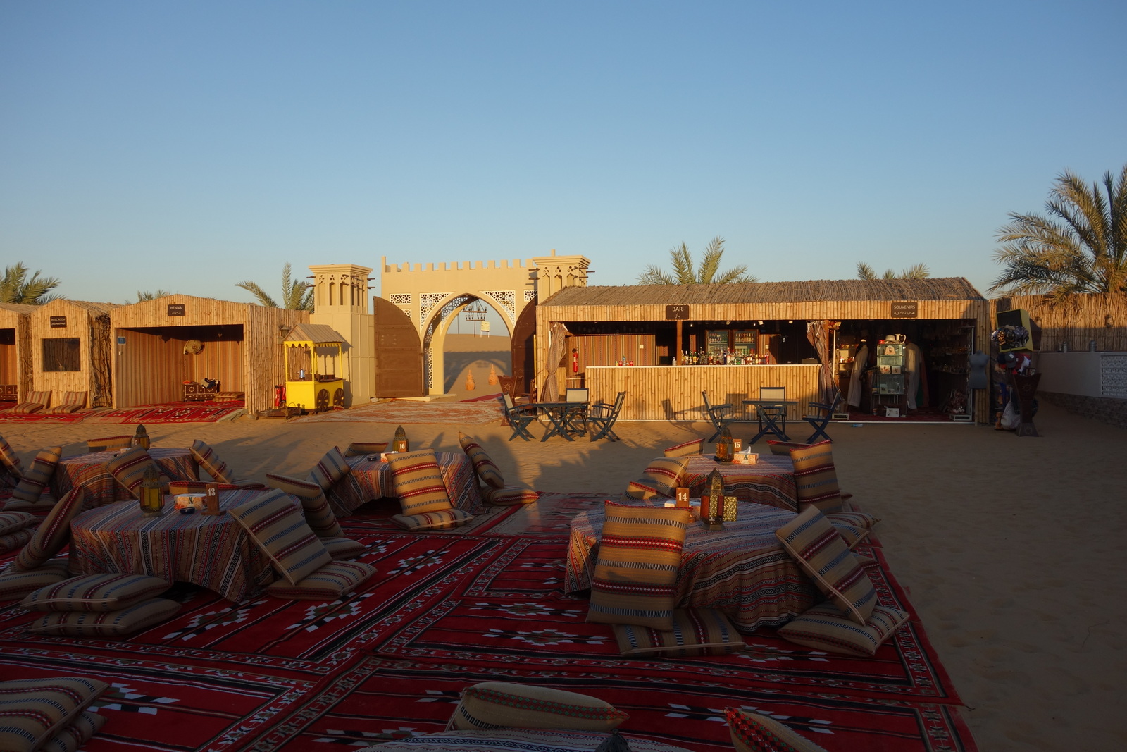 Allzu lange dauert es nun nicht mehr, bis unser Fahrer inmitten und trotz des ganzen Sandes dennoch das Wüstenkamp „The Desert Gate“ findet. Andere scheinen nicht so viel Glück zu haben und irren wohl noch orientierungslos durch die unwirtliche Wüste. Jedenfalls sind wir hier noch nahezu allein.