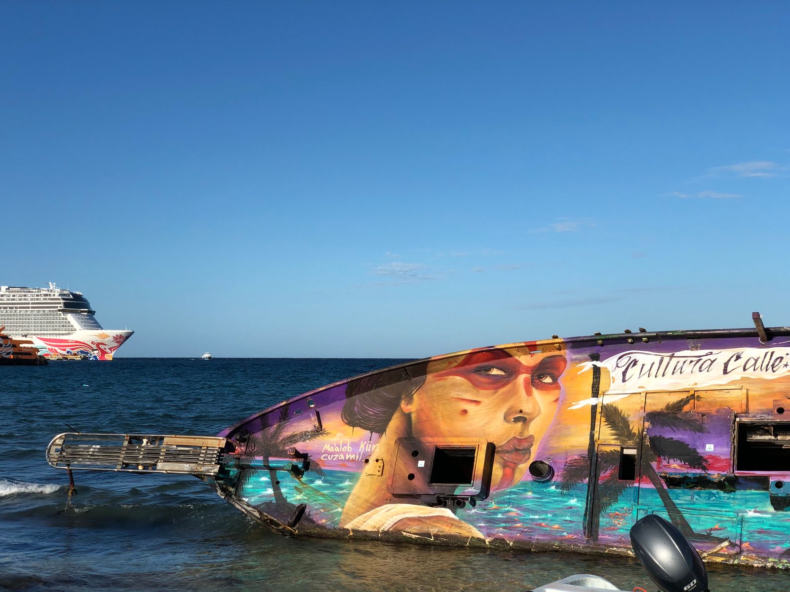 Wir laufen weiter zum Marktplatz von San Miguel. Erhalten einige Informationen über die Geschichte der Insel, von der Besiedelung der Maya, der Eroberung der Spanier im 16. Jahrhundert bis zu Jacques Cousteau, der durch seine Dokumentarfilme in den 1960er Jahren die Insel als Taucherparadies berühmt machte.