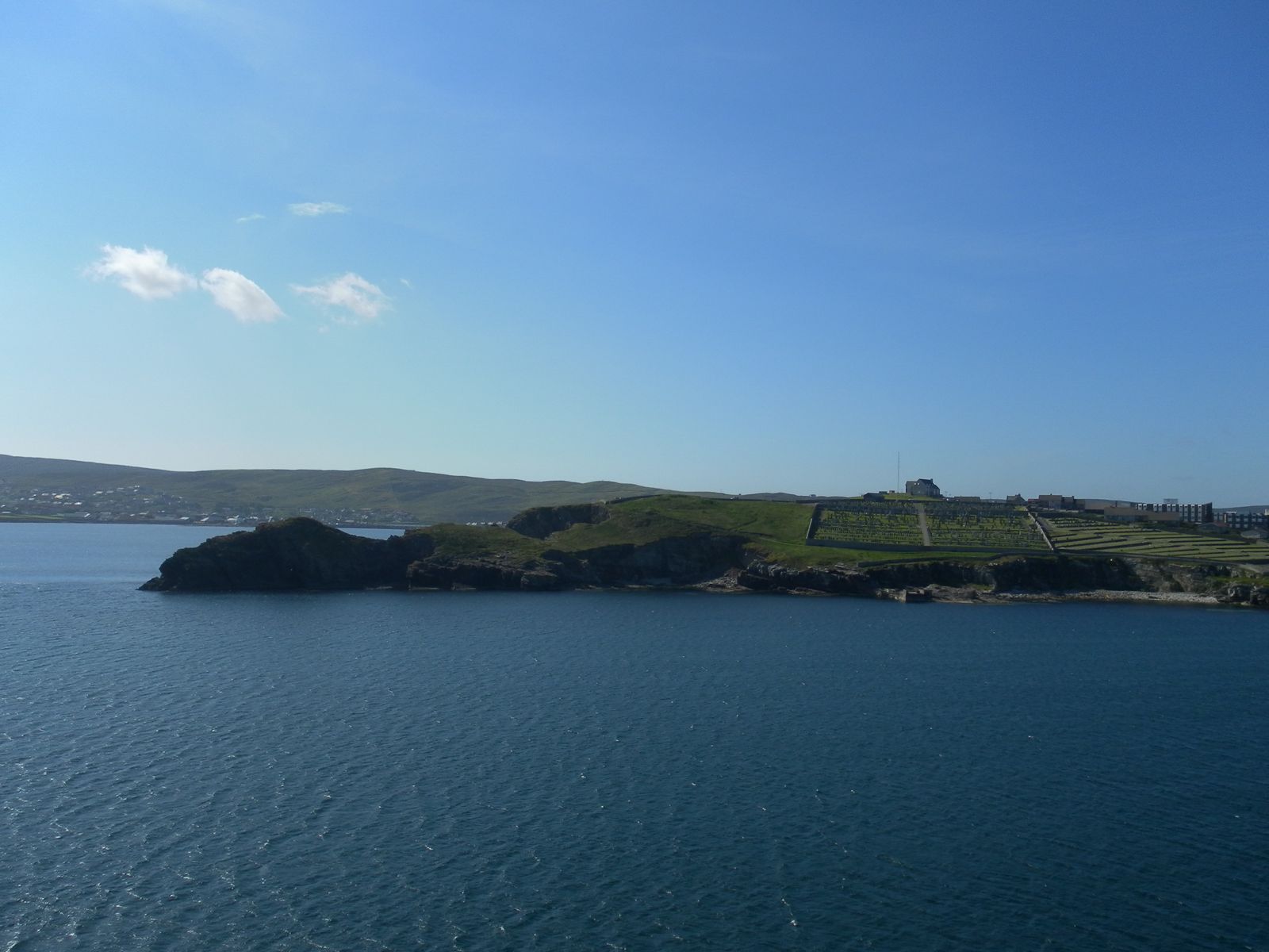 Wir sahen eine karge Landschaft, als wir uns Mainland, der Hauptinsel der Shetlandinseln näherten.