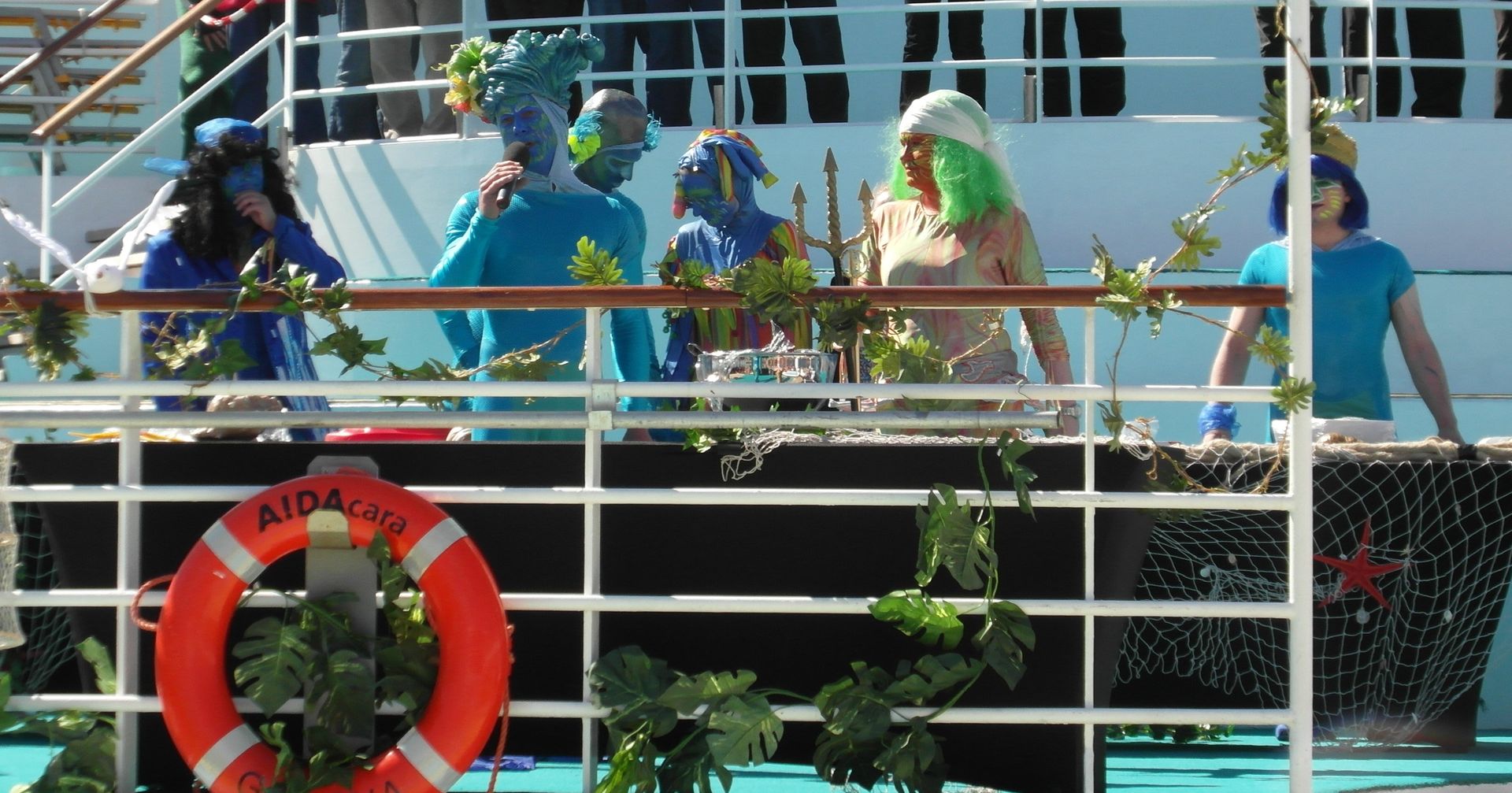 Und plötzlich ….. aus den Tiefen des Meeren erschien König Neptun mit Krone und Dreizack samt Gefolge an Bord der Cara.