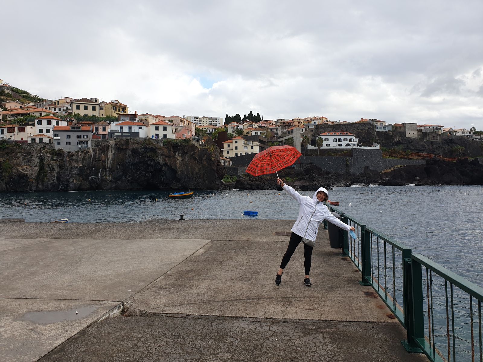 Ich bin froh, dass wir eine Regenausrüstung dabei haben und so tanze ich kurz mit meinem Schirm im Regen zu „Singing in the rain“. Mein Mann lacht und sagt, „mit der Nummer könntest du ja im Theatrium der Mar auftreten!“ Haha, das wäre noch was. Kurzer Blick auf die Uhr, wir müssen zurück zum Treffpunkt, wo wir erwartet werden.
