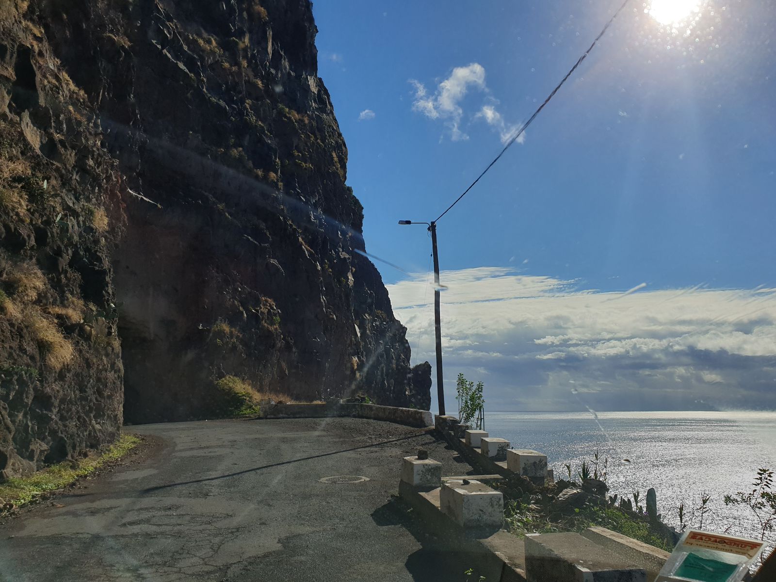 Inacio informiert uns, er müsse noch schnell sein Auto waschen gehen bzw. fahren. Er biegt ab, auf eine schmale Straße entlang der Küste und erzählt, dass dies die alte Verbindungsstraße nach Funchal sei. Dank Fördergelder der EU hat man inzwischen ein modernes Straßennetz mit Autobahnen gebaut. Es gibt unzählige Tunnel und Brücken und der große Vorteil, man kommt schneller von A nach B. Früher haben die Fahrten kreuz und quer über die Insel und entlang der Küste Stunden gedauert, viele Kurven, schmale Passagen, Gesteinsbrocken manchmal auf der Straße. Dann sagt er zu mir: „mach dich bereit mit der Kamera, die Waschstraße liegt vor uns!“ Ich zücke mein Handy, Videofunktion aktiviert und dann sehe ich den Wasserfall vor der Tunneleinfahrt. Inacio lacht und fährt vor und zurück und vor und zurück und dann meint er, sein Auto sei nun sauber. Ich höre beim schreiben noch das Trommeln der Wassertropfen auf dem Autodach. Etwas entfernt stehen ein paar Touristen, die dieses Waschspektakel filmen.