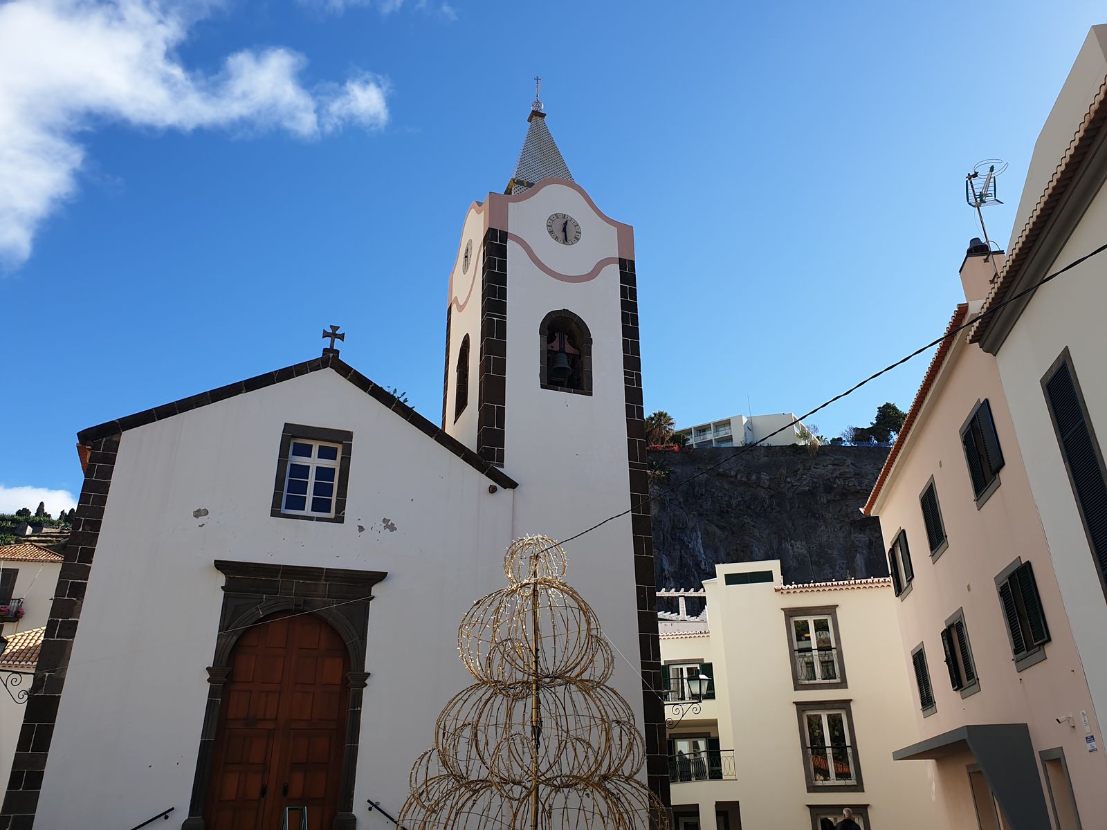 Der Ortskern steht unter Denkmalschutz. Die im 16. Jahrhundert erbaute Kirche Igerja Matriz leuchtet weiß in der Sonne und vor dem Rathaus stehen schon die Elche bereit, den Weihnachtsmann irgendwo hin zu bringen.
