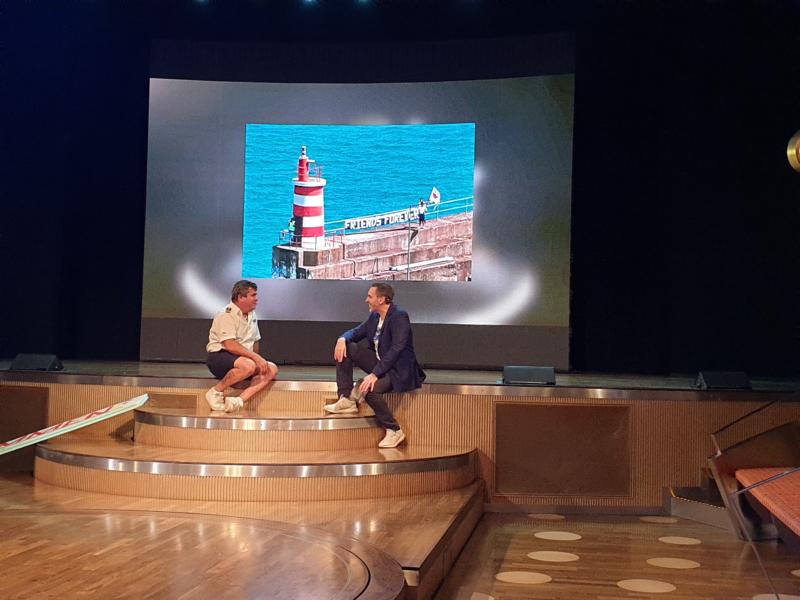 Nach dem Abendessen sputen wir uns, damit wir noch einen Platz im Theatrium bekommen zur Prime Time mit Nils. Zu Gast ist Inacio und der sprüht voller Temperament, als er die Fragen beantwortet. Er hat von der Verwaltung der Insel eine Ehrenmedaille erhalten, für seine Verdienste um den Tourismus – zu Recht, finde ich.