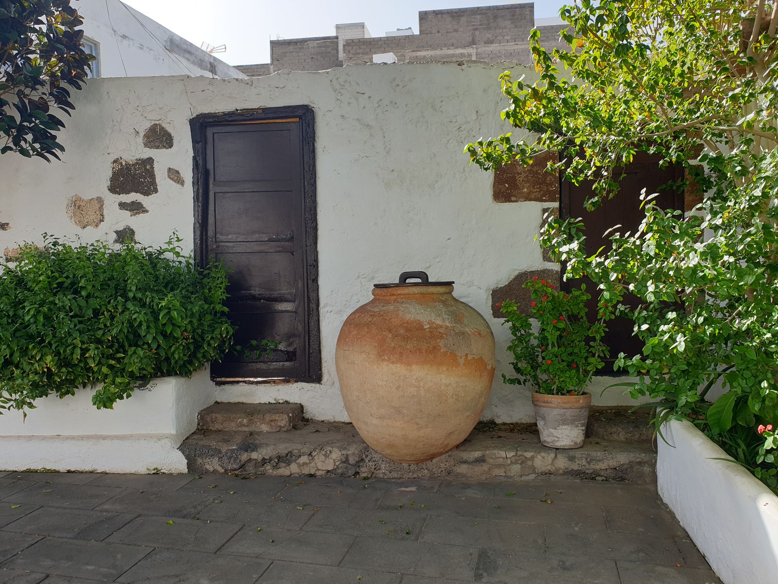 Ich entdecke eine schmale Gasse und wir entscheiden, da wollen wir durchlaufen. Welch eine hübsche Ecke, verwinkelt, es gibt urige Häuser, blühende Blumen, einen Hund der von einem Balkon herunter bellt und kein Mensch unterwegs.