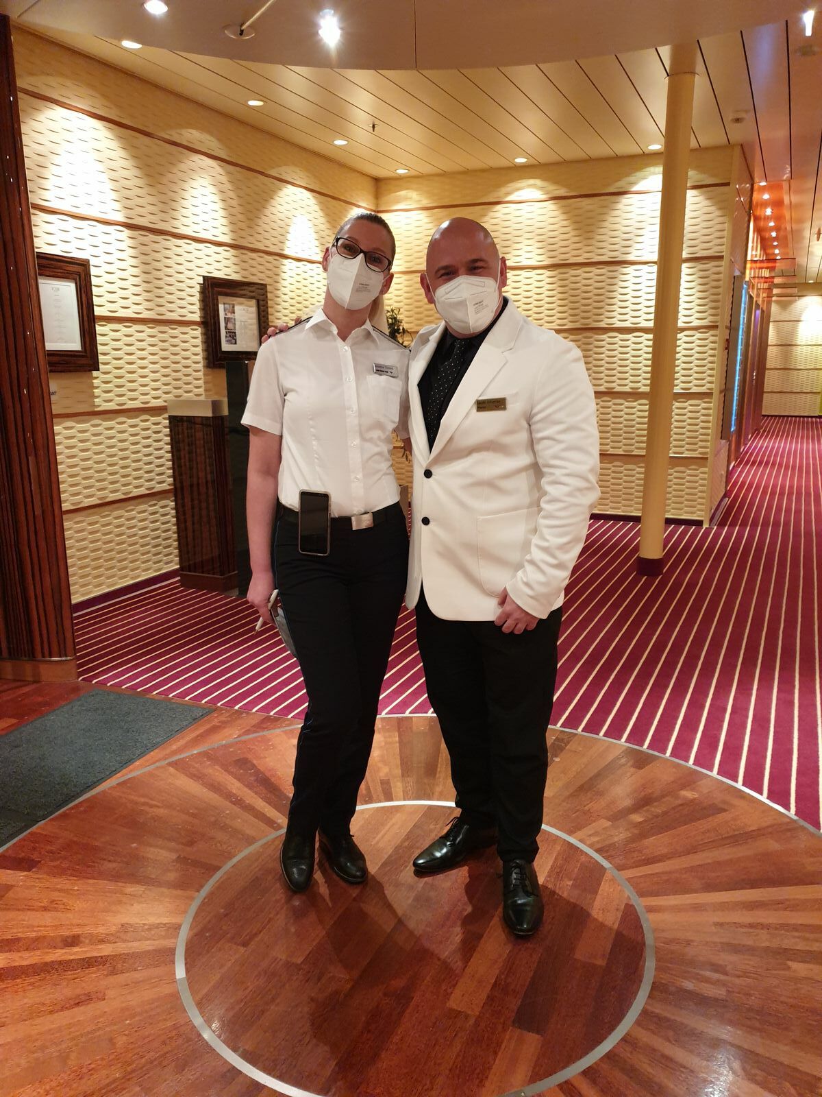 Zurück an Bord verstauen wir den kleinen Rucksack, gehen noch einen Happen essen – schon wieder – und sind rechtzeitig zum Auslaufen der Mar auf dem Pooldeck. Unterwegs treffe ich KrisztinaTörök die Restaurantleiterin des Rossini und den Pianisten Laszlo Fehervari. Schick sehen sie aus in ihrem schwarz-weiß-Outfit und ich wünsche ihnen noch einen wunderschönen Abend – jó estét.