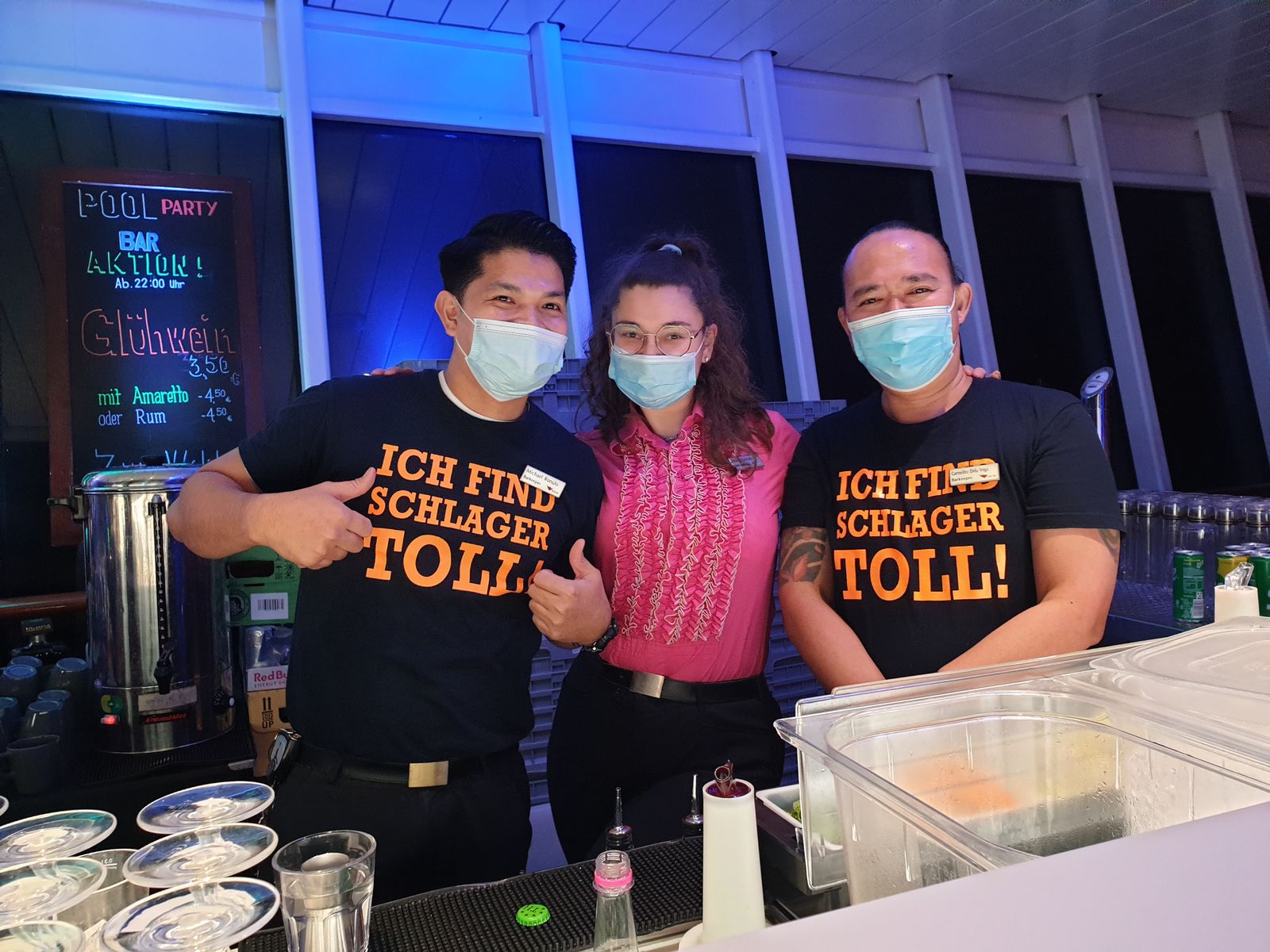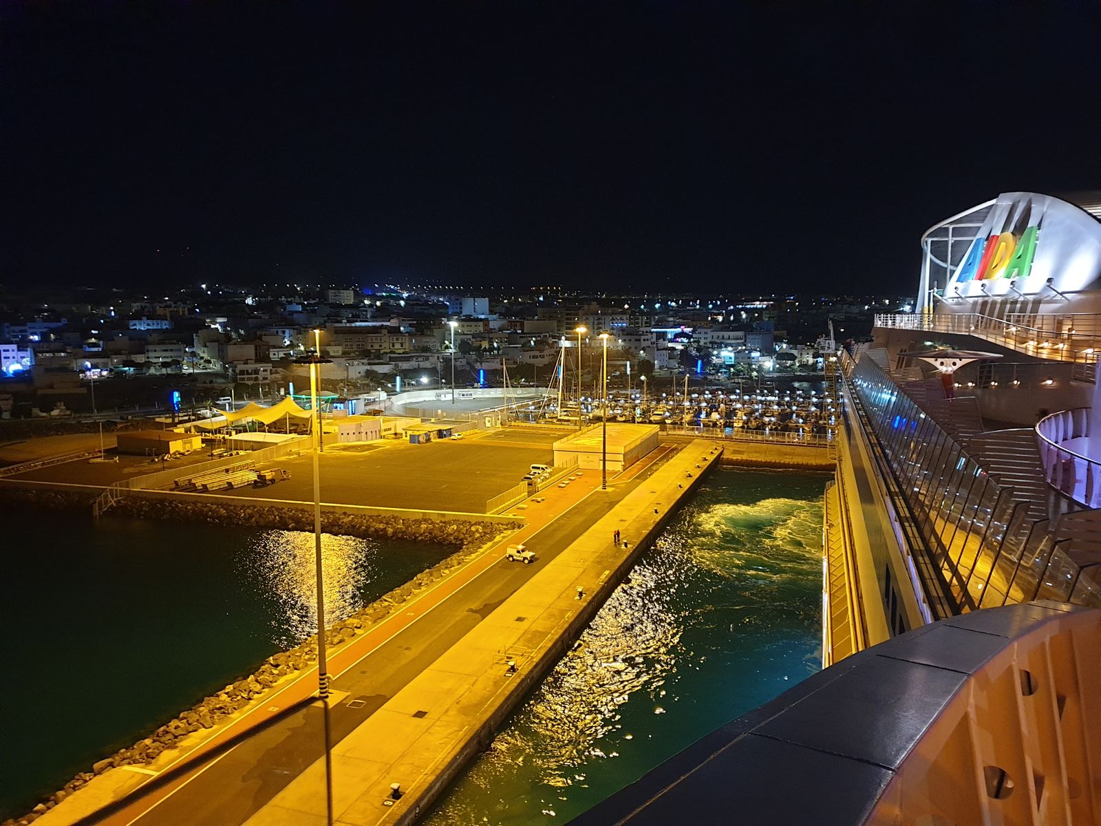 Der Wind hat aufgefrischt, wir schnappen uns eine Wolldecke und warten auf das Auslaufen, was sich aber verzögert und so entscheiden wir uns, aufs Pooldeck zu gehen, denn dort ist die Schlagernacht mit DJ Tim angekündigt. Ja, ein wenig noch Hits anhören ist fein und dann aber Kabine aufsuchen. Für heute reicht das Programm. Morgen früh erreicht die Mar Teneriffa und auch dort wollen wir noch einiges anschauen.