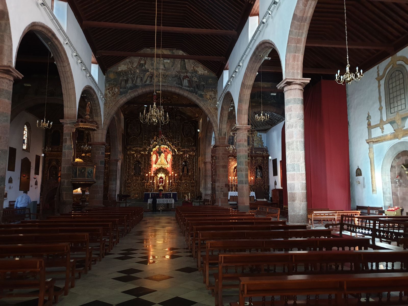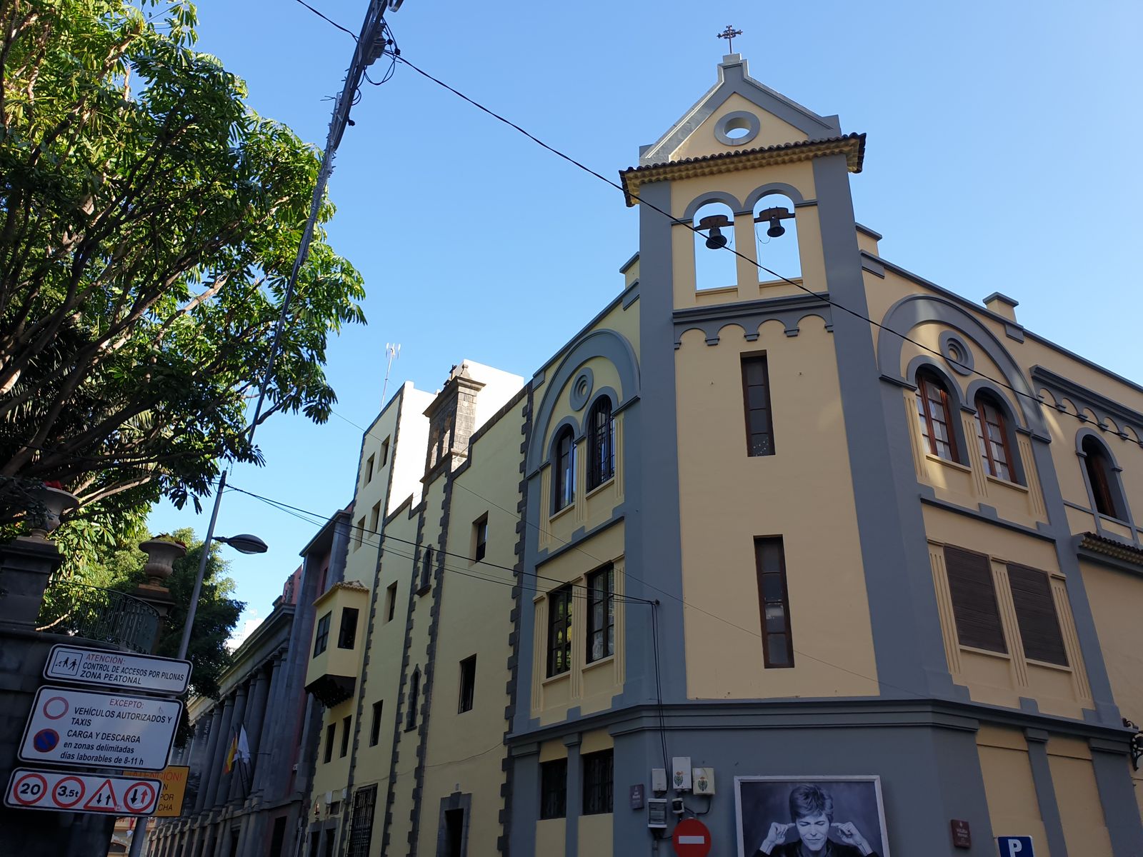 Drüben bzw. genau gegenüber liegt die bekannteste Kirche der Stadt. Etwas weiter kommen wir am Eingang zum Palacio Insular vorbei, der gerade renoviert wird.