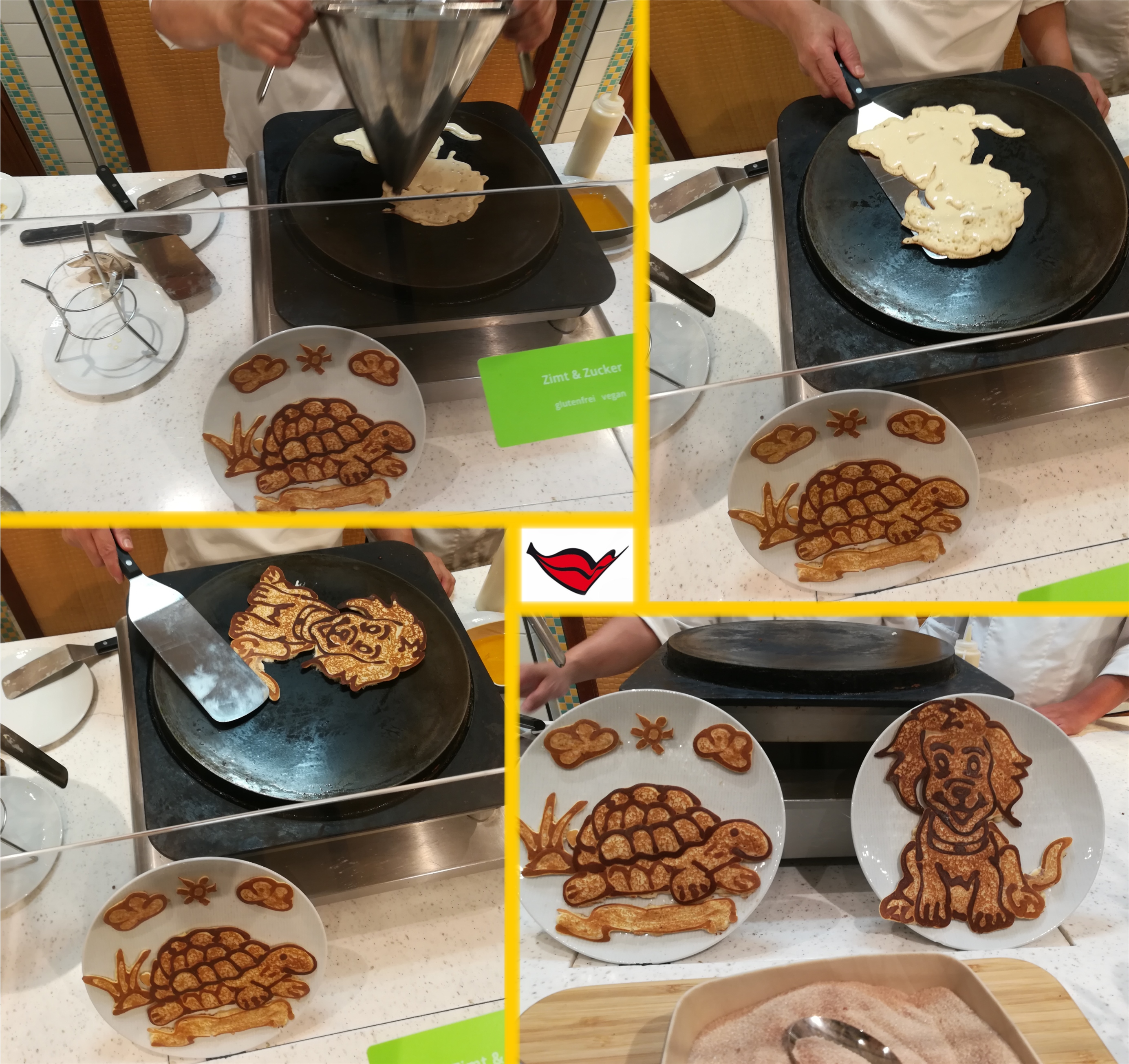Routiniert hatte unser "Pfannkuchenbäcker" nicht nur die Pfannküchlein zubereitet, nein, er kreierte auch kleine Kinstwerke.