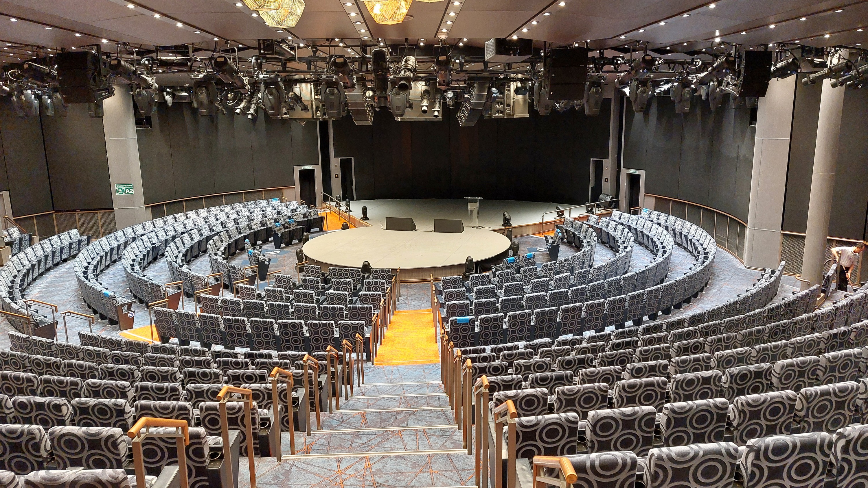 Das World Stage Theater auf der Koningsdam. Tagsüber finden hier Vorträge statt oder es werden Filme gezeigt. Abends waren hier Shows mit Tänzer oder Auftritte eines Comedians und eines Magiers/Mentalisten
