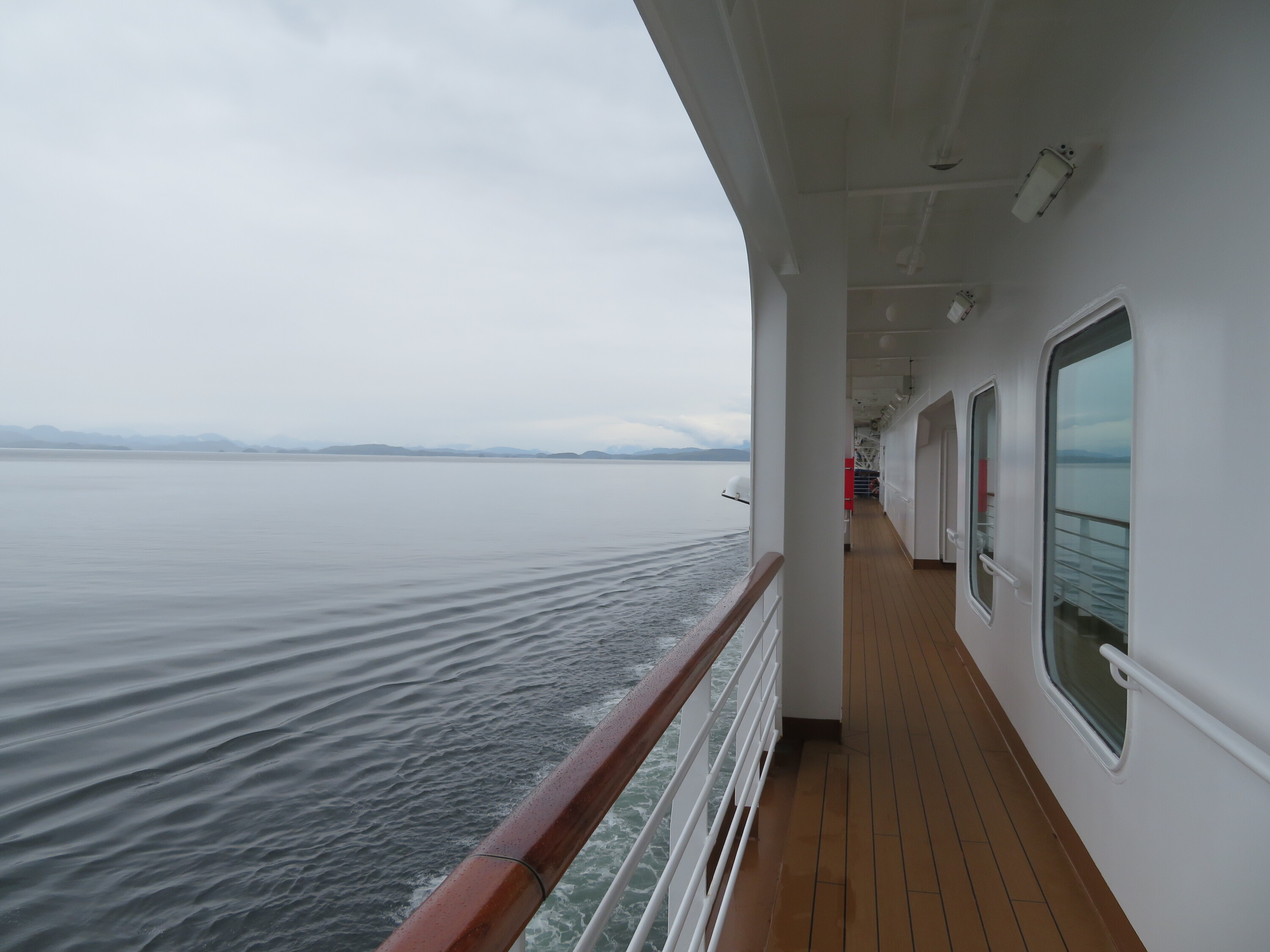 Eine meiner Lieblingsorte auf der Koningsdam: das Promenadendeck. Auf Deck 3 gelegen ist man dem Meer wirklich nach und kann einmal um das Schiff herum gehen. In der Mitte des Schiffes wird zwar der Blick durch die Rettungsboote was versperrt, davor und danach hat man aber einen wunderbaren Ausblick.