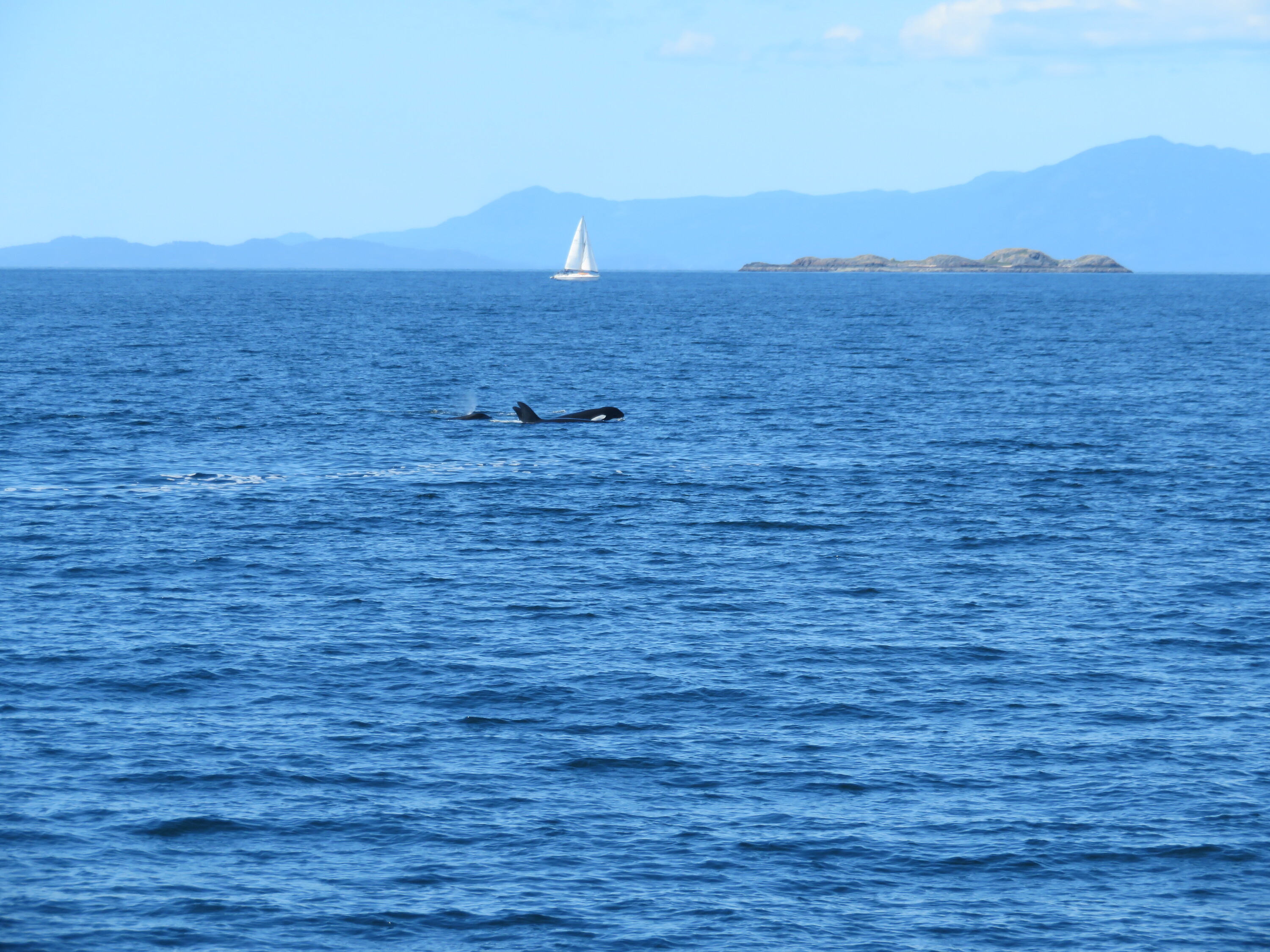 In der Nähe von Nainamo, Vancouver Island, konnten wir 4 Mitglieder der Orca Famile T49A sehen: die Mutter Nan mit 3 ihrer Kinder.