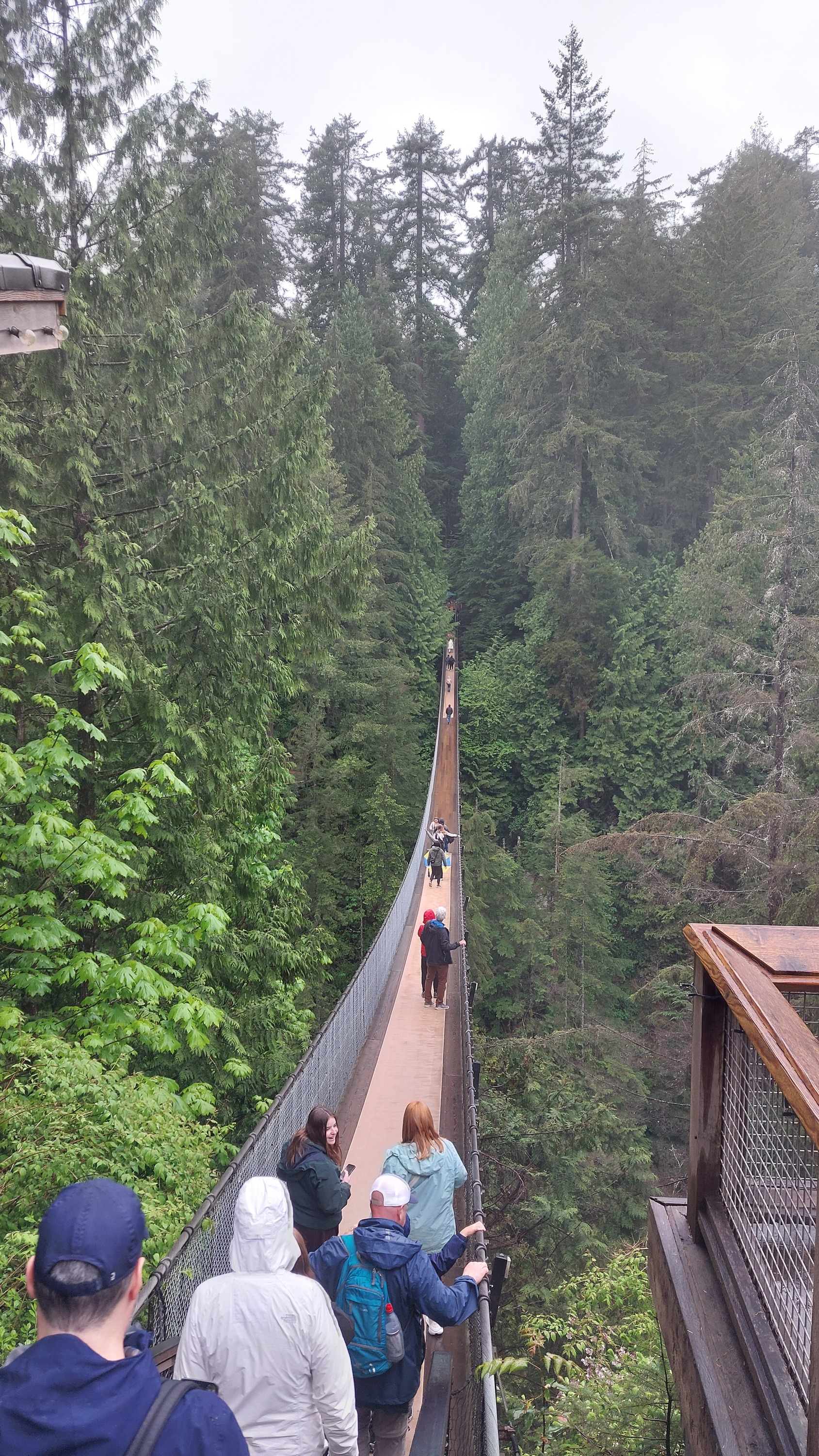 Ausflug zur Capilano Suspension Bridge. Leider hat es an dem Tag leicht geregnet. Aber trotzdem absolut empfehlenswert. Nichts für Menschen mit Höhenangst. Auf der Hängebrücke haben wir mitbekommen wir eine Frau nach nur einem kurze Stück wieder zurück gegangen ist.