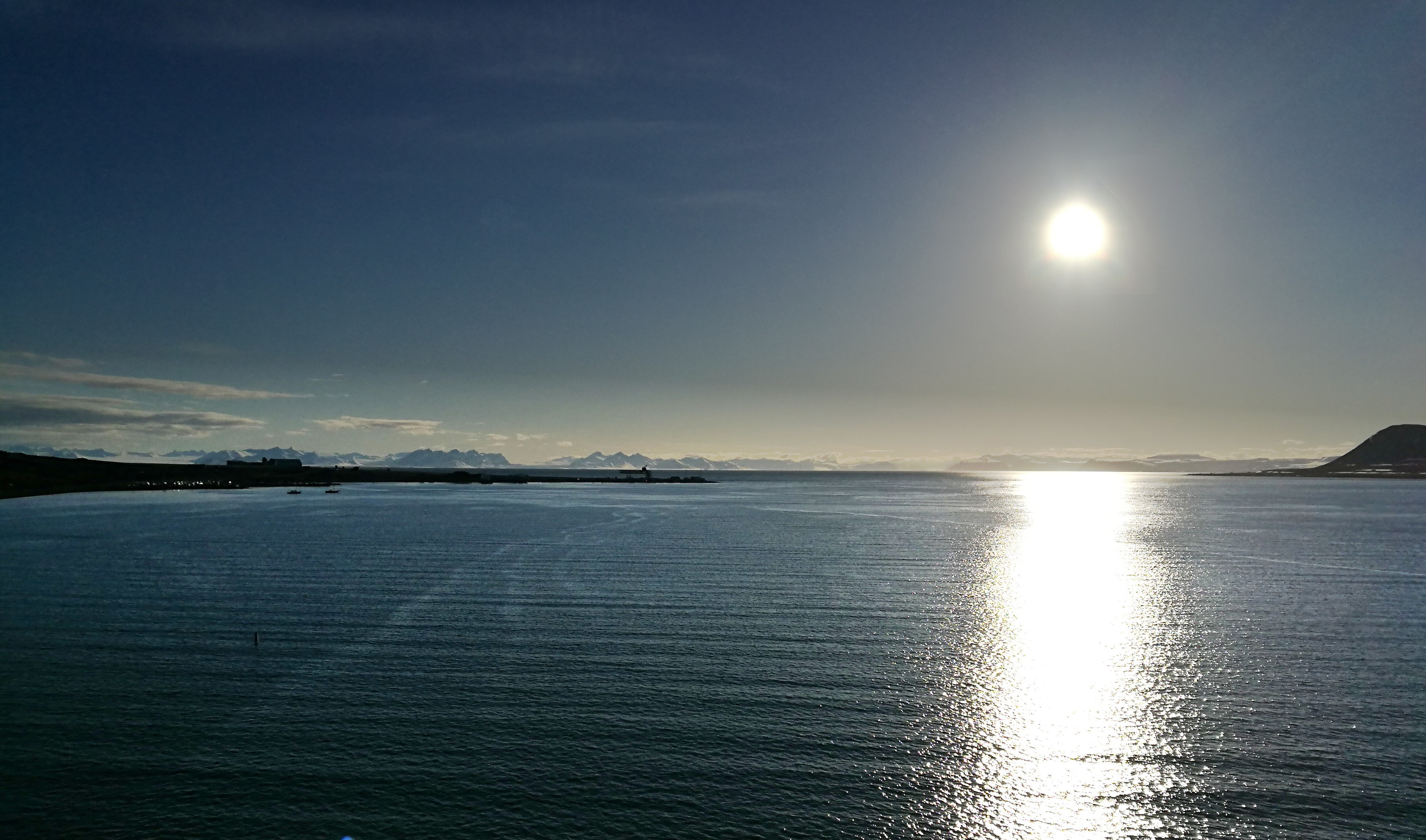 Mitternacht Longyearbyen, Spitzbergen am 6. Juni 2018 um 00:01 Uhr