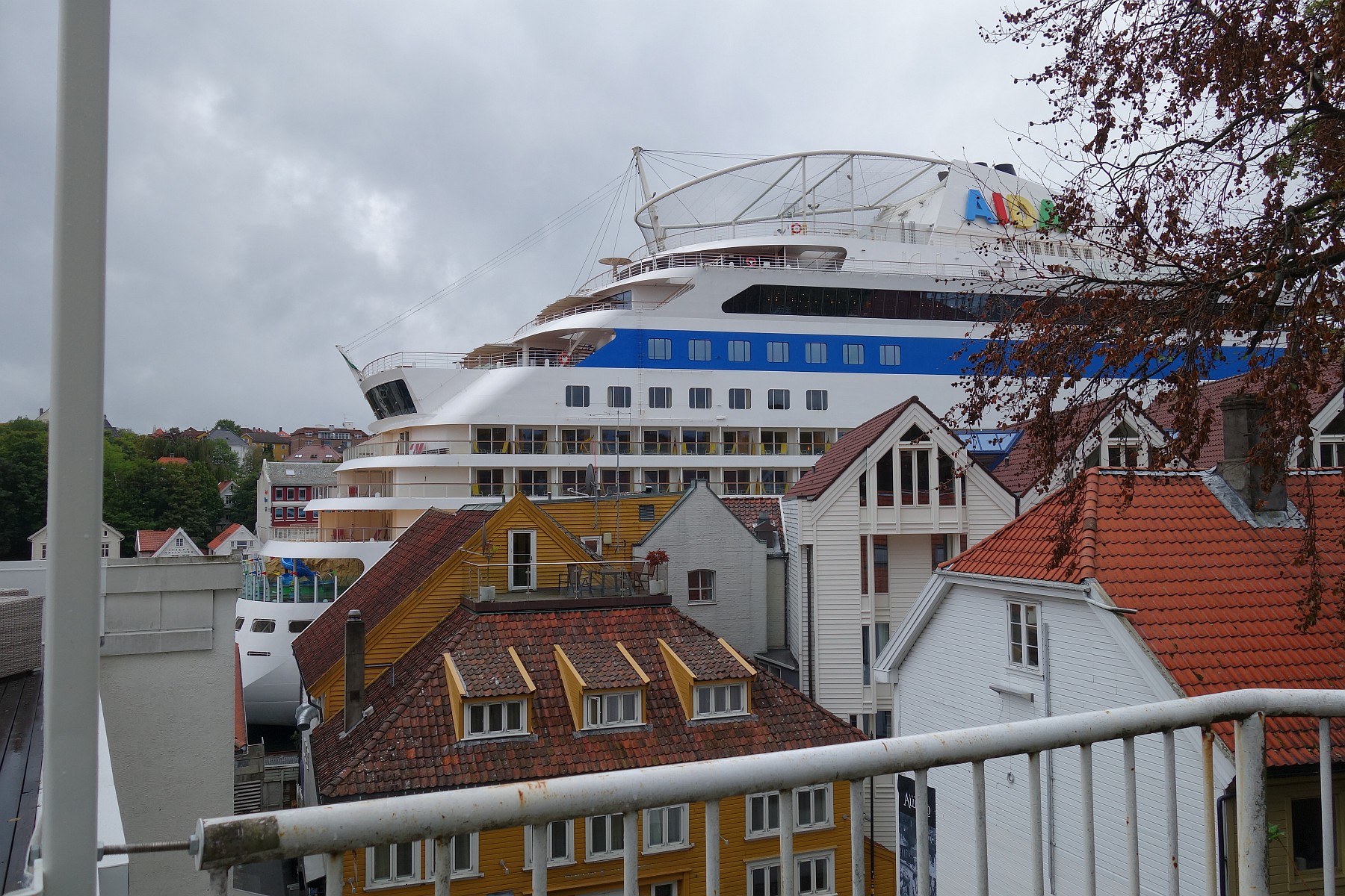 Die AIDAluna klemmt sich in Stavanger zwischen die Häuser
