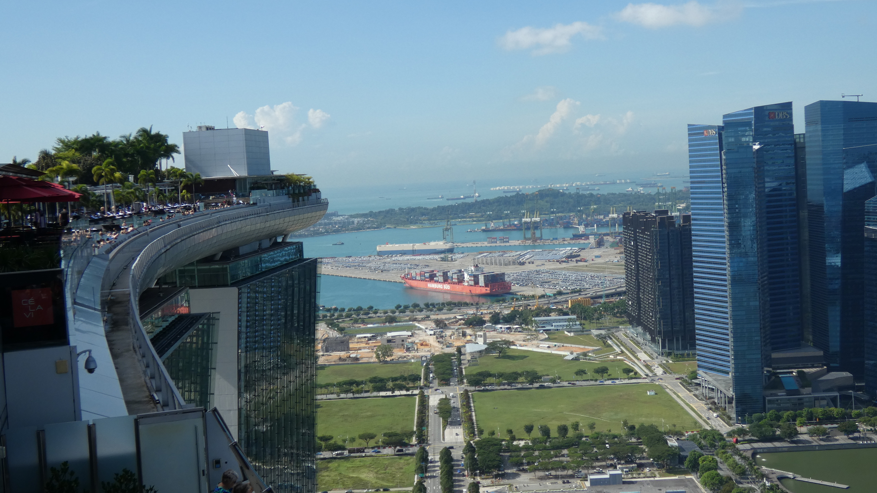 Aussichtsplattform Marina Bay Sands Hotel, Blick auf Infinity-Pool