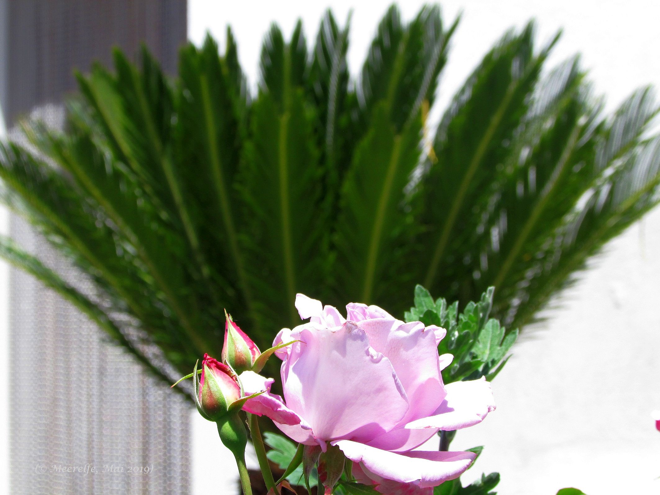 Alles eine Frage der Perspektive. Jedenfalls bot sich mir mit dieser herrlich duftenden Rose und dem sattgrünen Palmfarn im Hintergrund ein interessantes Fotomotiv in Alberobello - jenem Ort, in welchem die Häuser "Zipfelmützen" tragen.