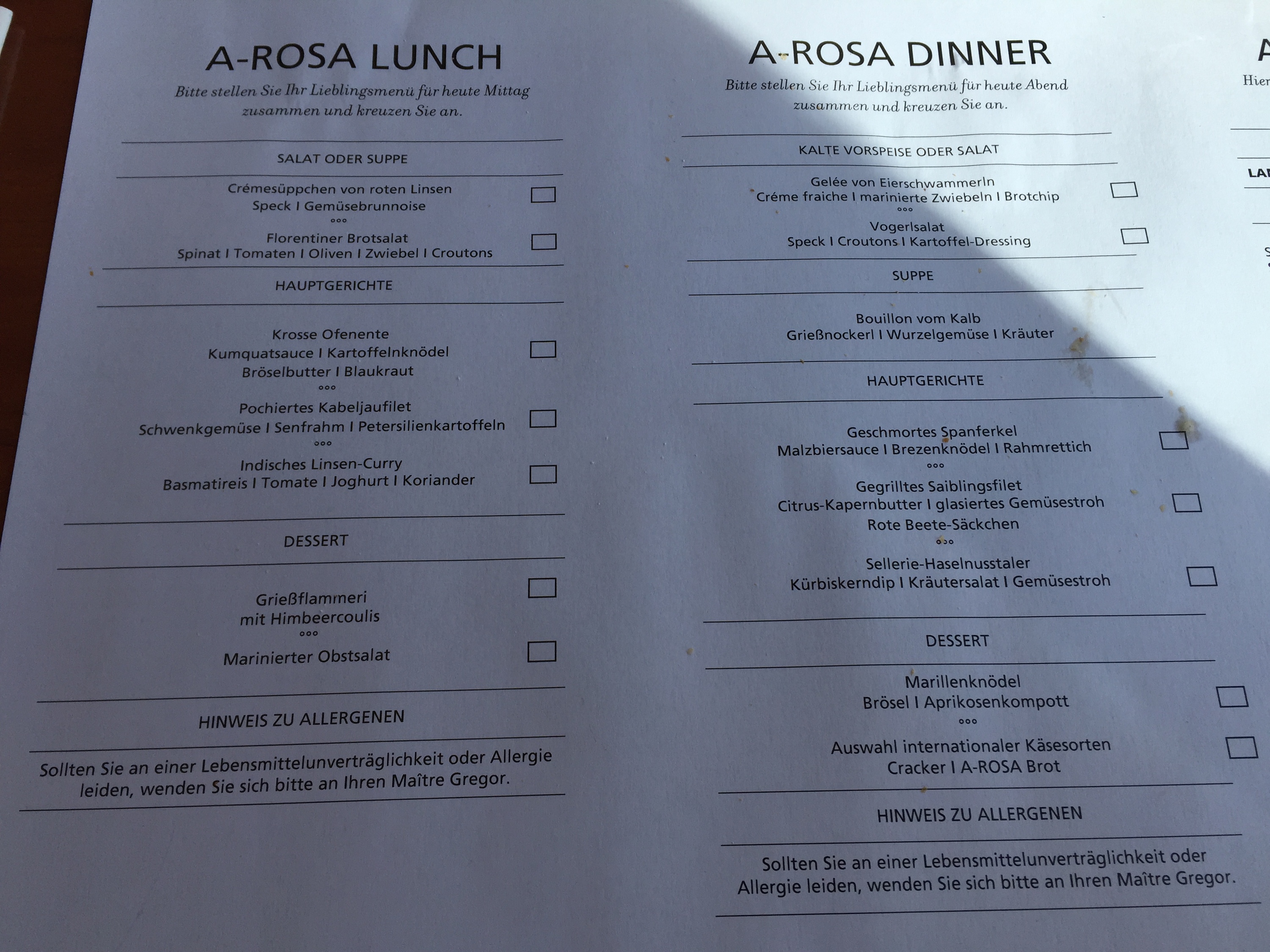 Menü Arosa Mia Bratislava 25.6.2020