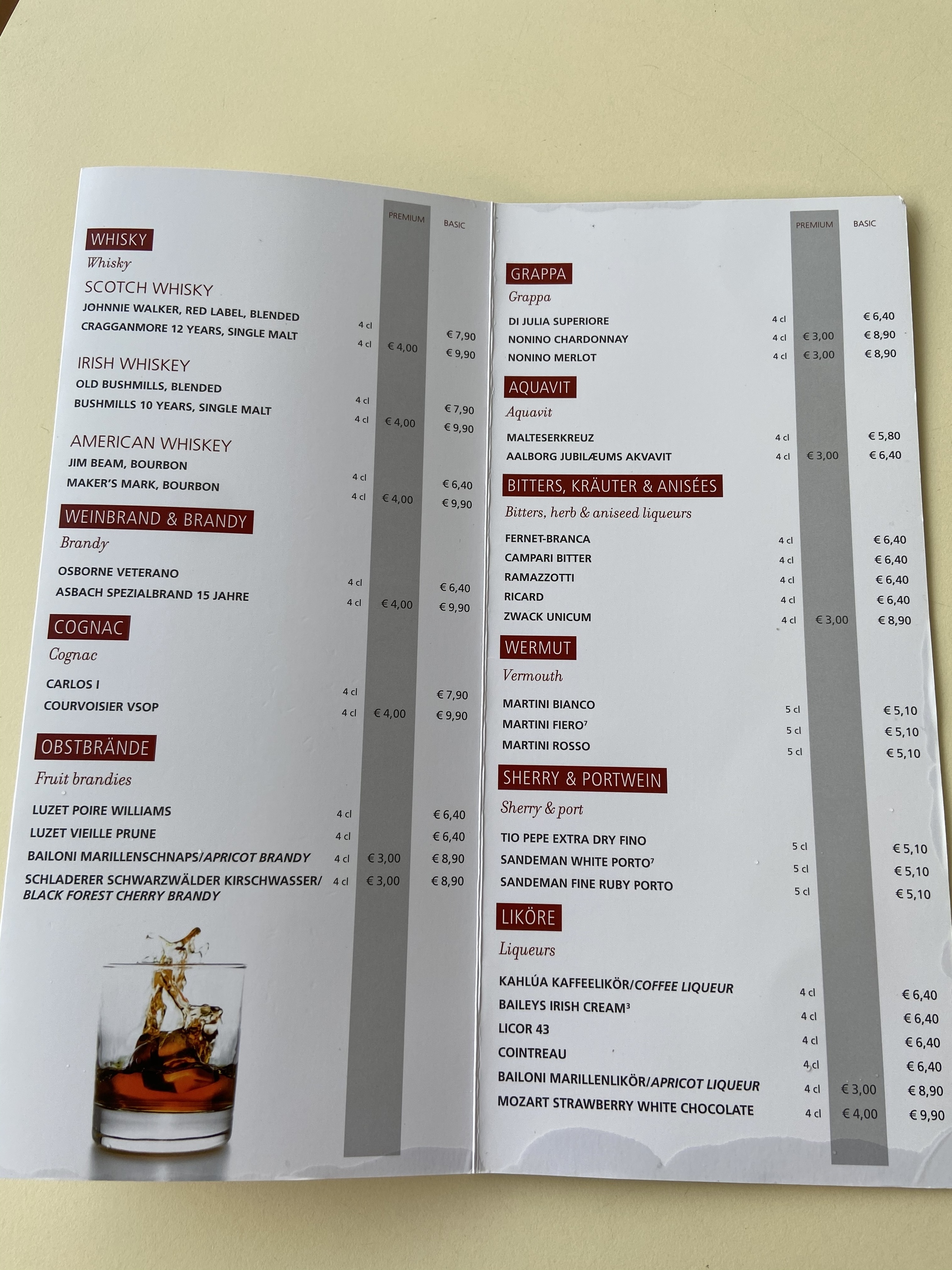 Getränkekarte Arosa Flora