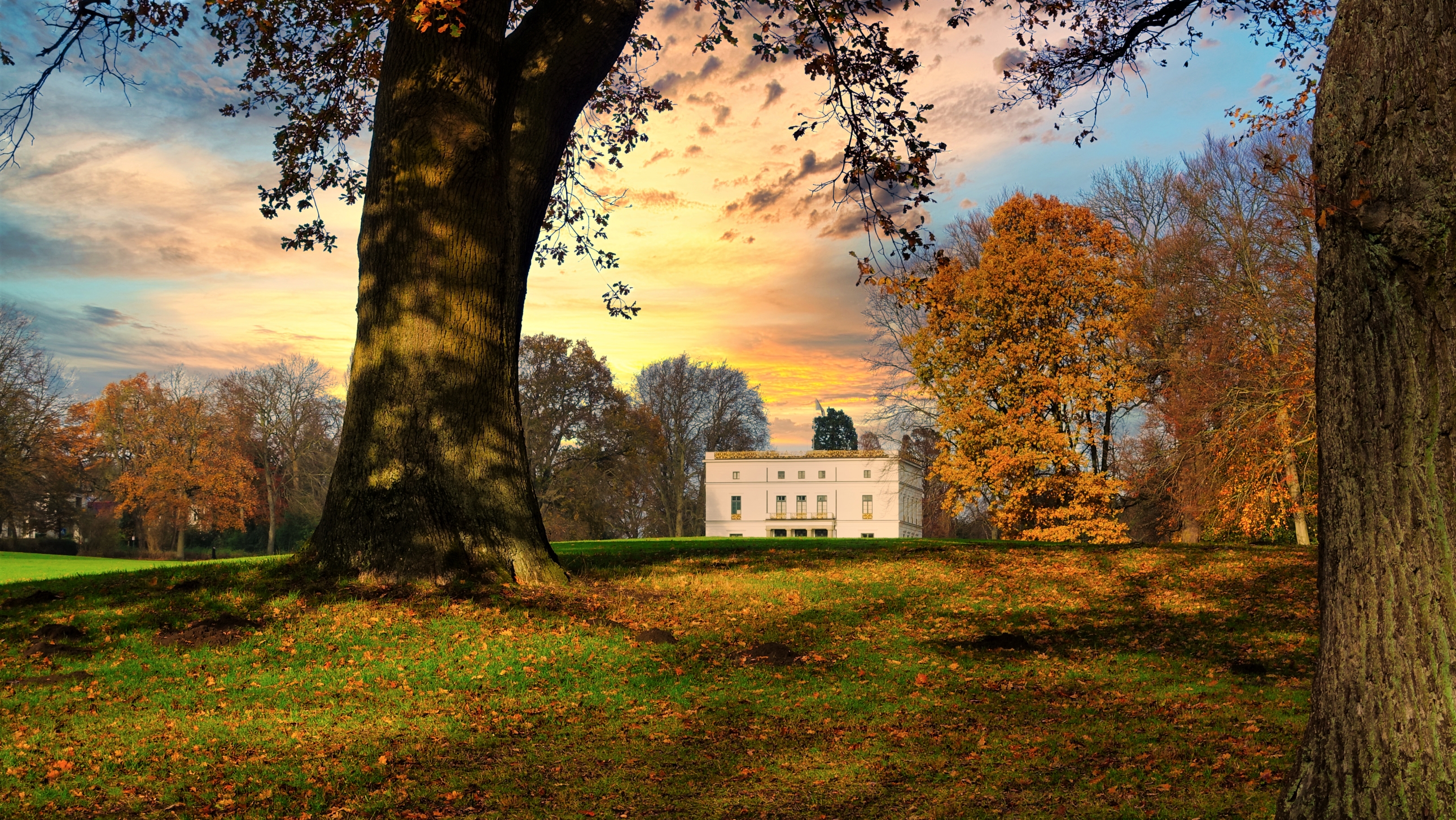 23.11.2020 Hamburg-Othmarschen: Sonnenuntergang am Jenischhaus im Jenischpark