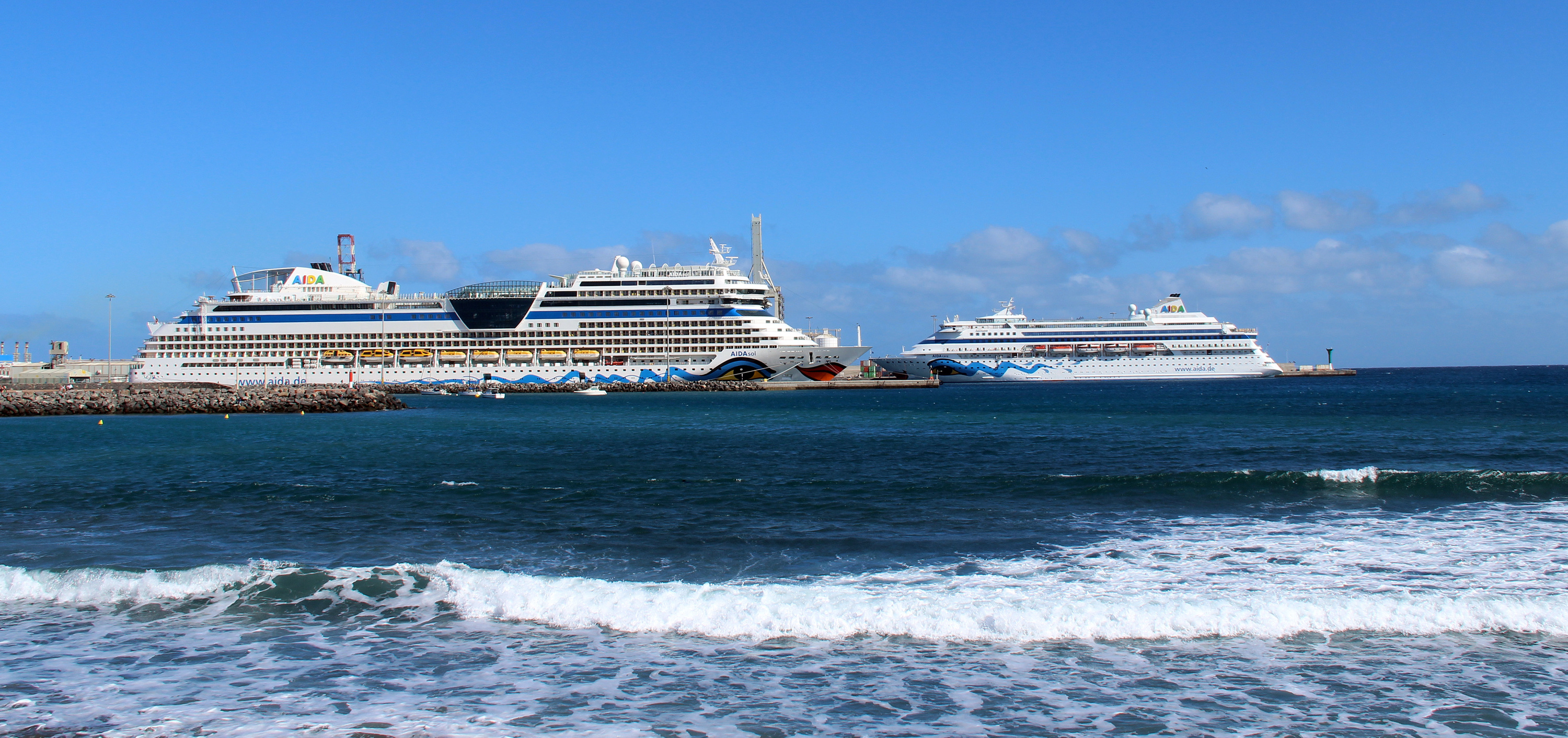 Daran erinnere ich mich noch genau. Pünktlich zum Ablegen blieben die Typhons nicht still und man wurde als gast der Sol von der Cara verabschiedet, die dann wenig später ablegte. Nur es wollte nicht so recht gelingen. Der Wind drückte die Sol von Backbord immer wieder an die Kaimauer. Ein Schlepper musste helfen.![]()