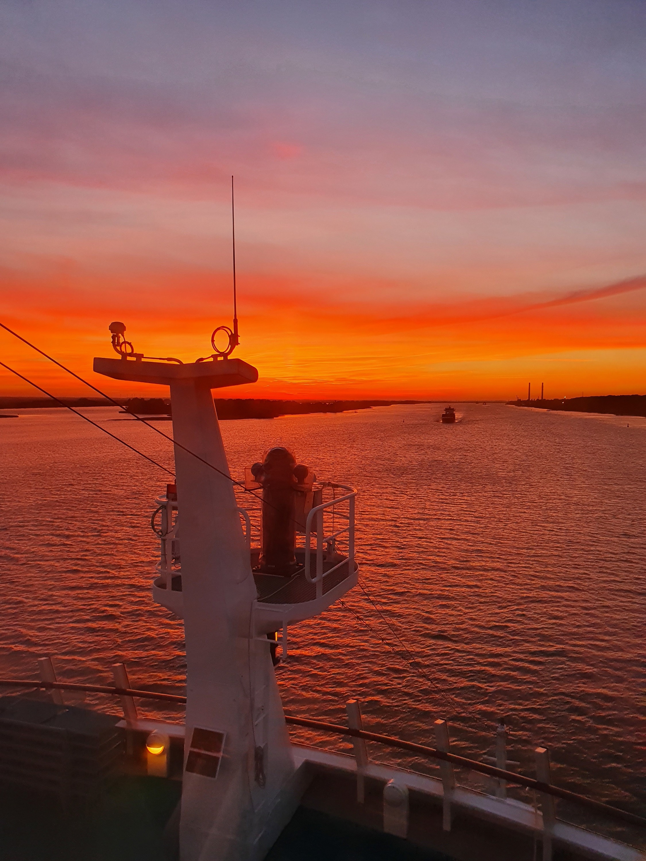 Mit der AIDAmar von Hamburg Richtung Elbmündung im Oktober