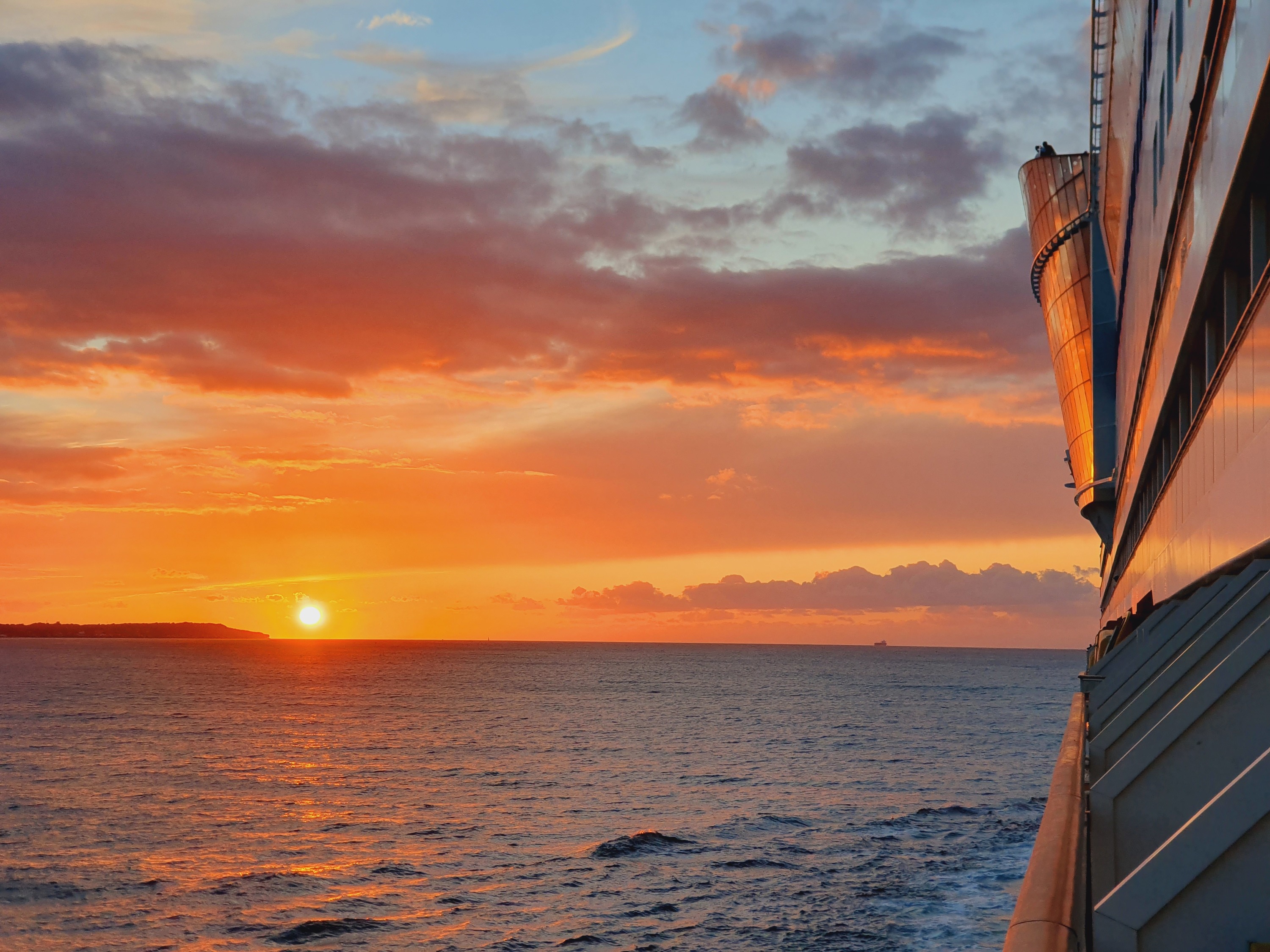 Ein Sonnenuntergang, wie er schöner nicht hätte sein können. Aufgenommen an Bord von AIDAsol nach 2 stürmischen Seetagen auf dem Weg von Stockholm nach Göteborg im August 2021.