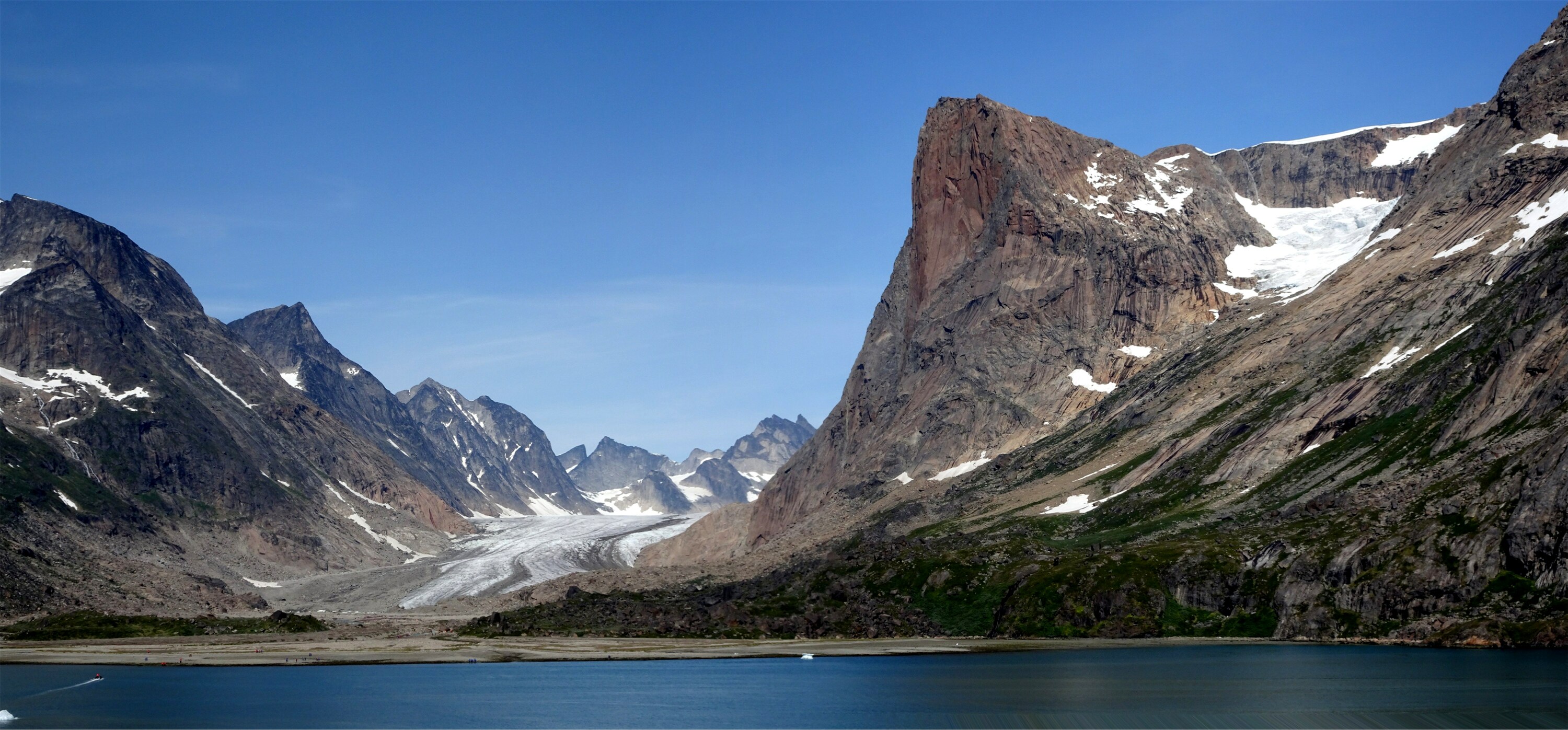 Hier der Blick auf ein Gletschertal.