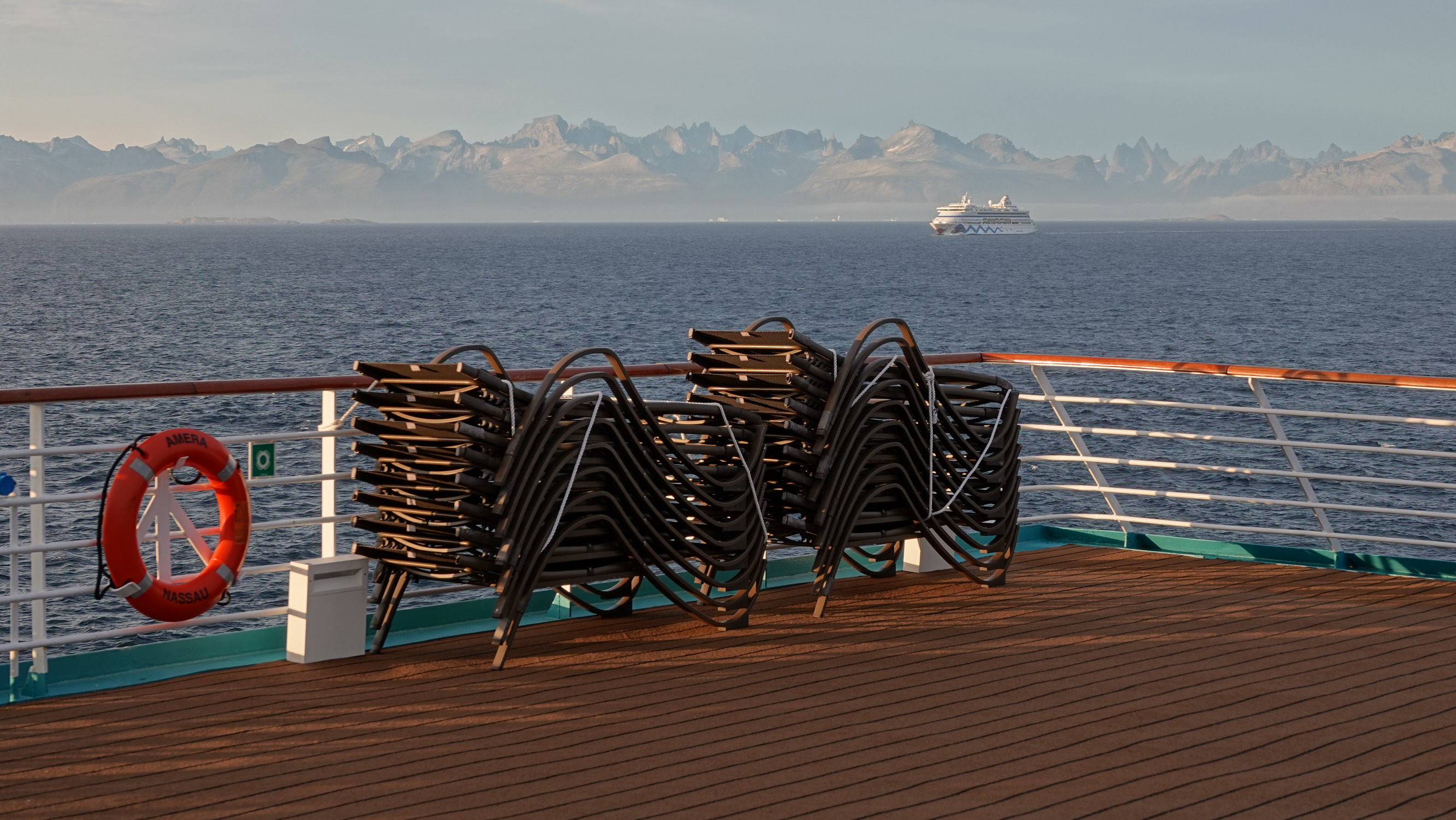 Da die AIDAaura bis nach Nuuk einen deutlich längeren Weg vor sich hatte als wir mit der MS Amera nach Qaqortoq, war die Überholung mit dem Lotsen auf beiden Schiffen abgesprochen.
