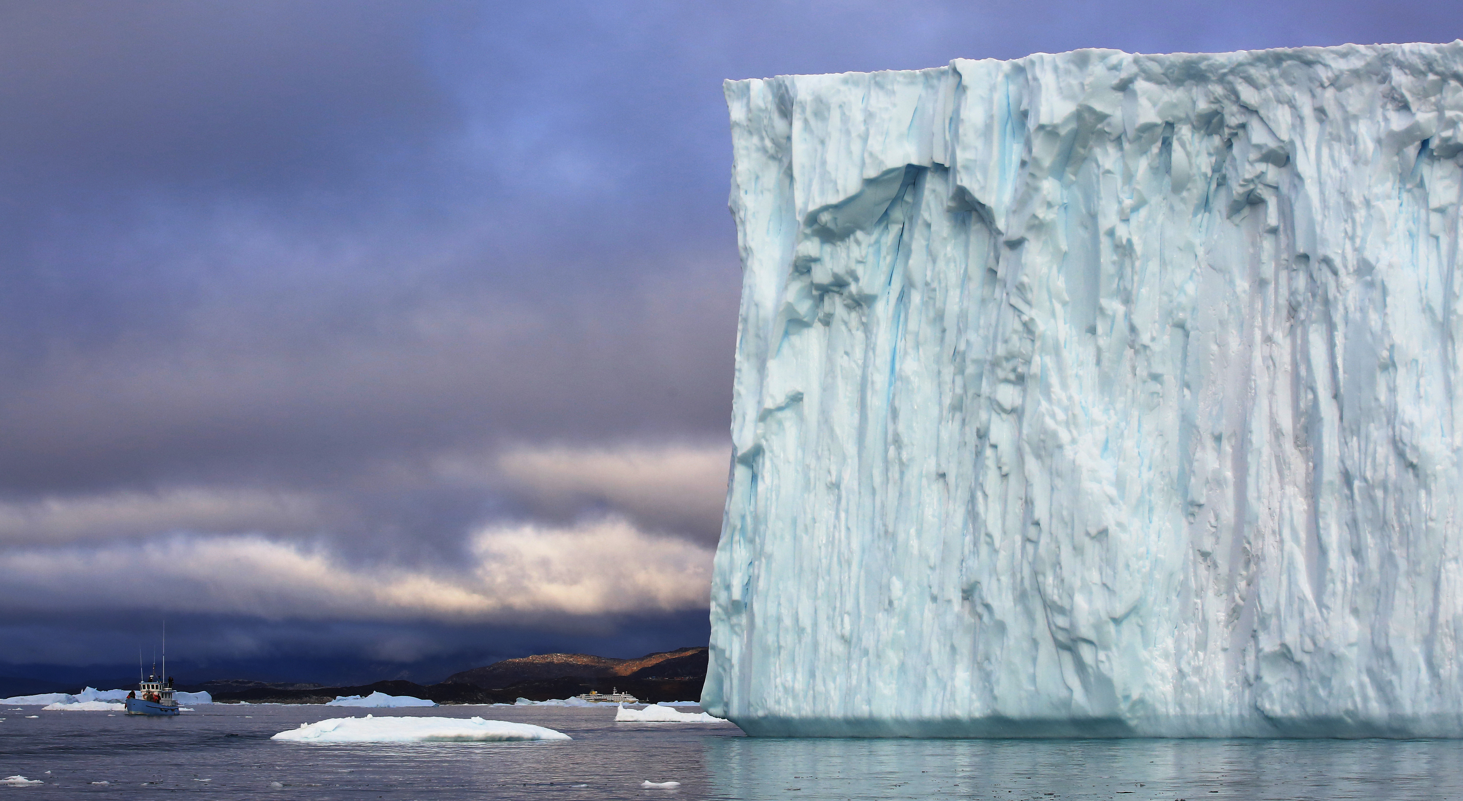 MS Hamburg im Hintergrund der Eisberge
