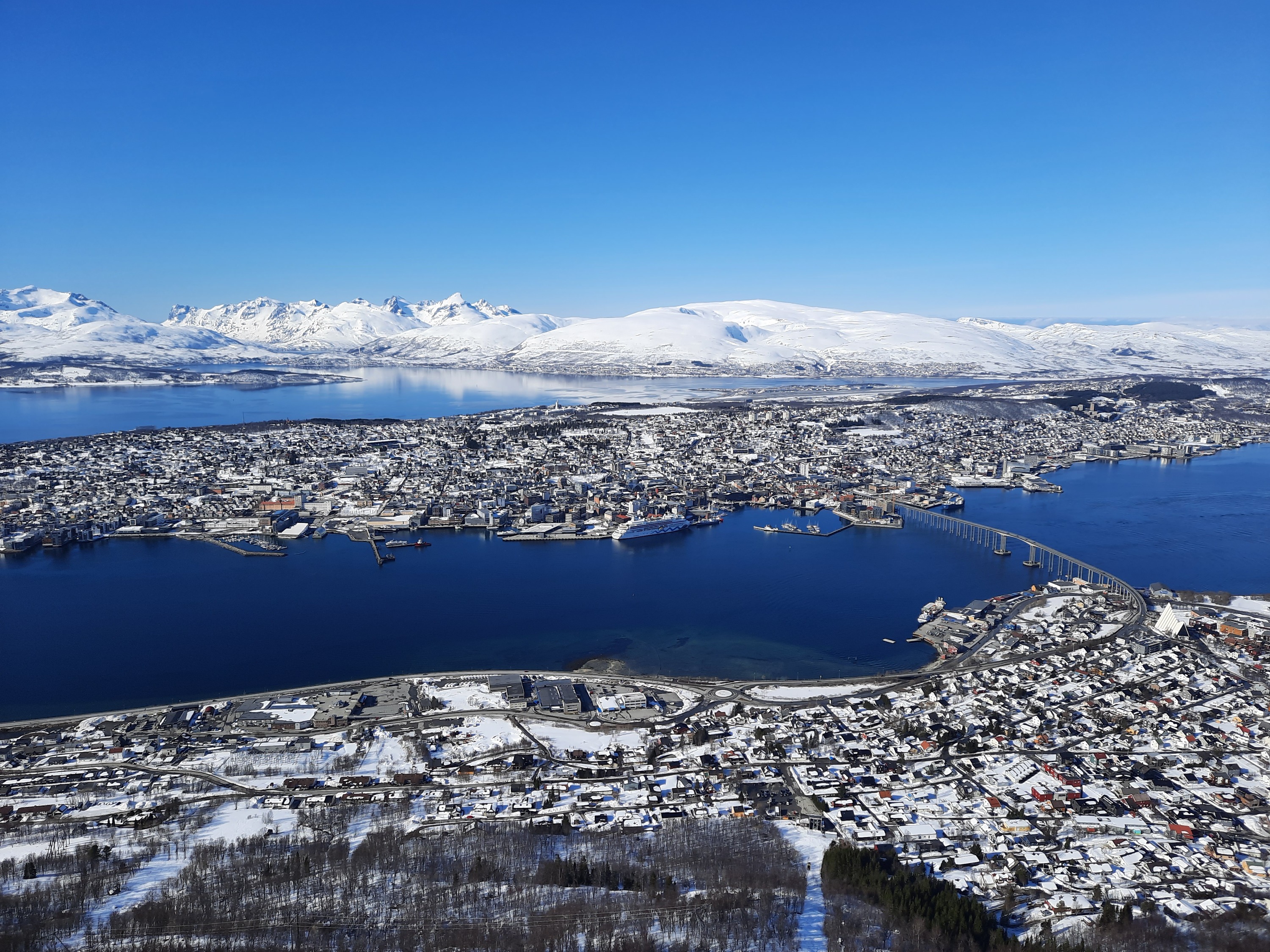 Tromso von oben bei traumhaftem Wetter