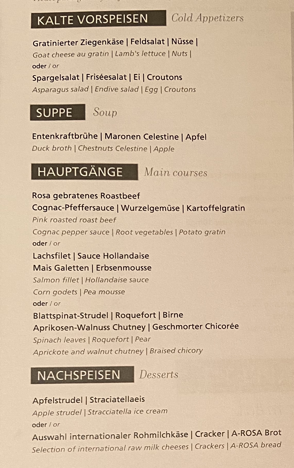 Arosa Flora Menü