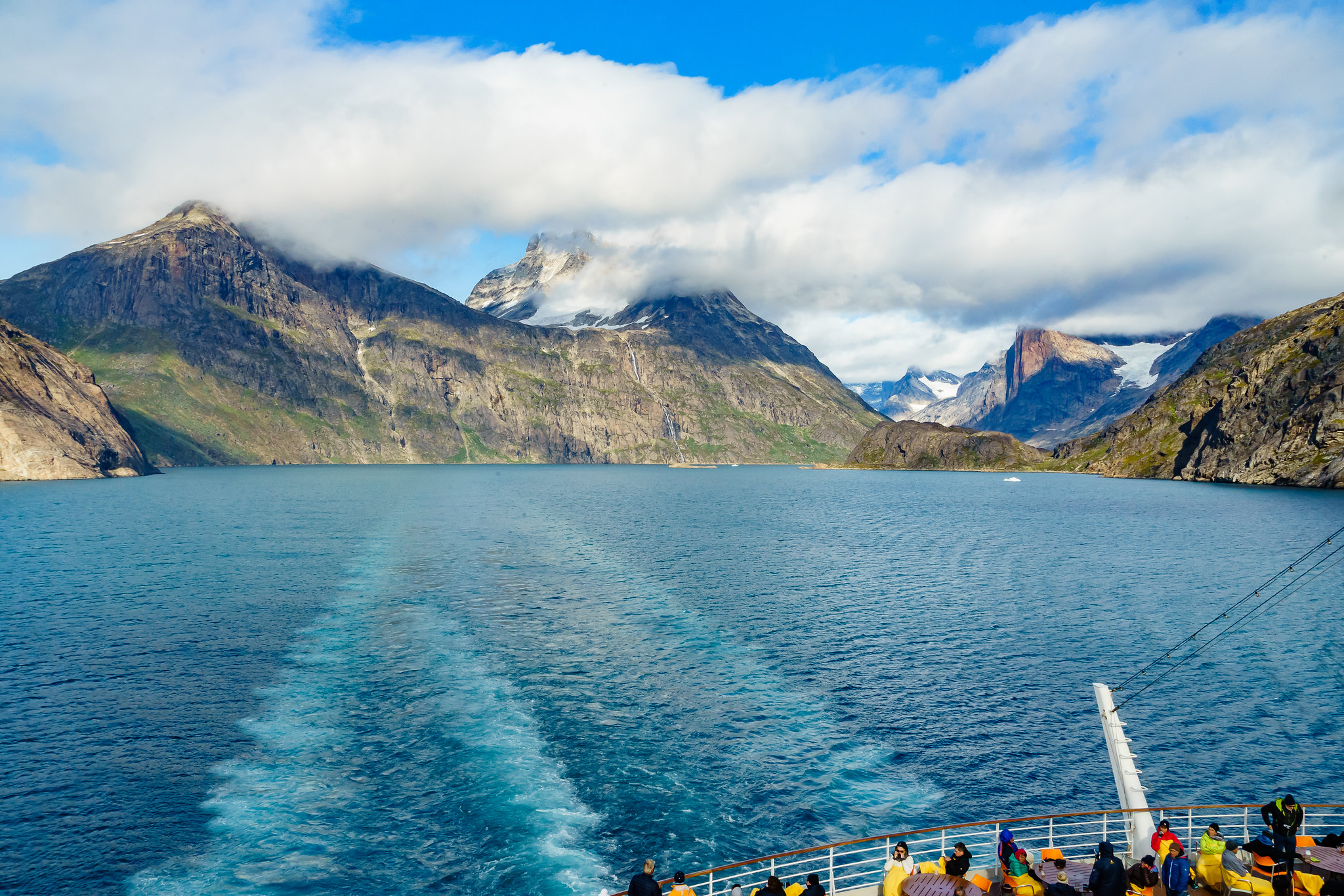 Unsere fahrt durch den Prinz Christian Sund bei schönsten Wetter.