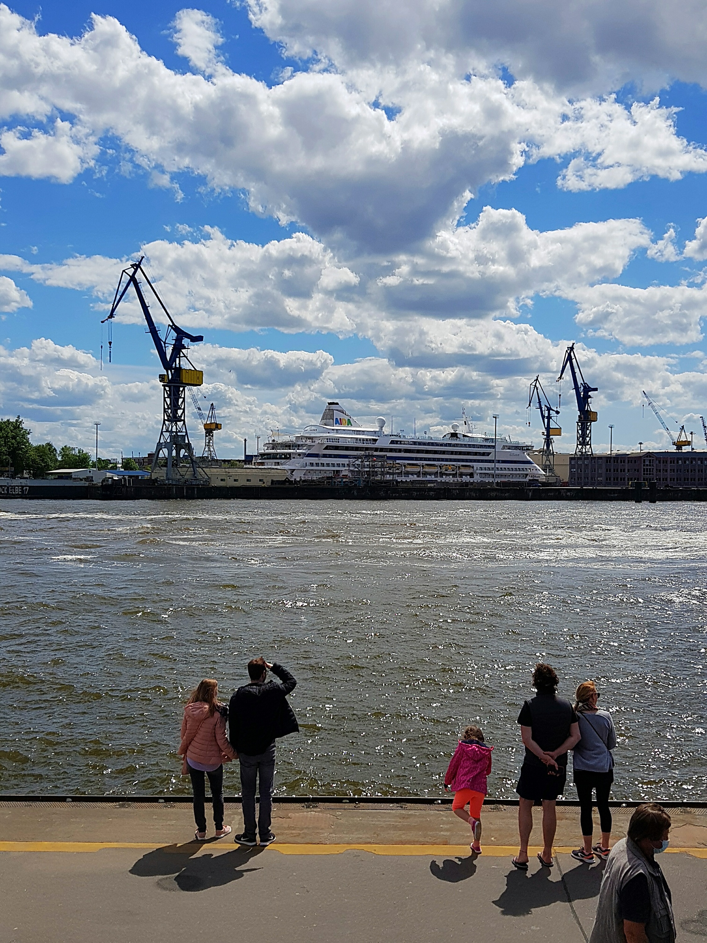 AIDAcosma läuft in den Hamburger Hafen ein