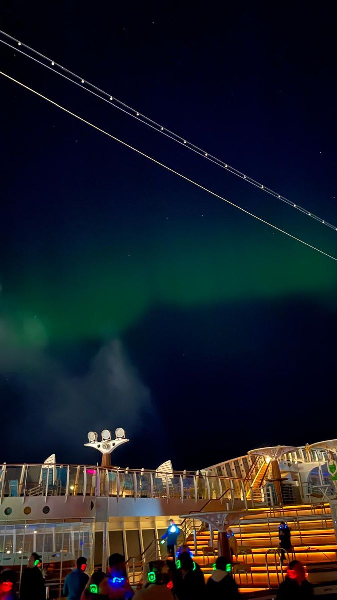 Gestern Abend war Silent party in Alta. Es gab mehrere Nordlichter zu sehen. Laut Aussagen von Mitreisenden wurde darüber direkt in den Kabinen informkert. Nicht sehr laut, es war schon nach halb elf.
