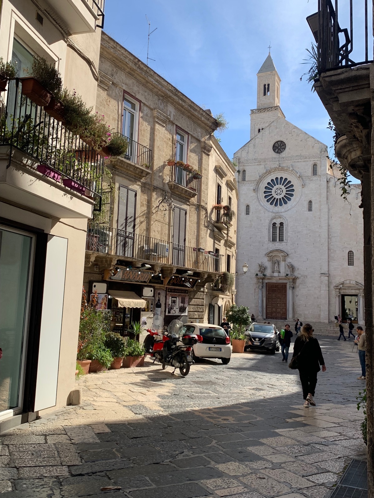 Wir sind bei unserem ersten Bari-Besuch gelaufen (dumme Idee, war brüllendheiß) beim zweiten Mal für billig Geld mit dem Bus hingefahren.