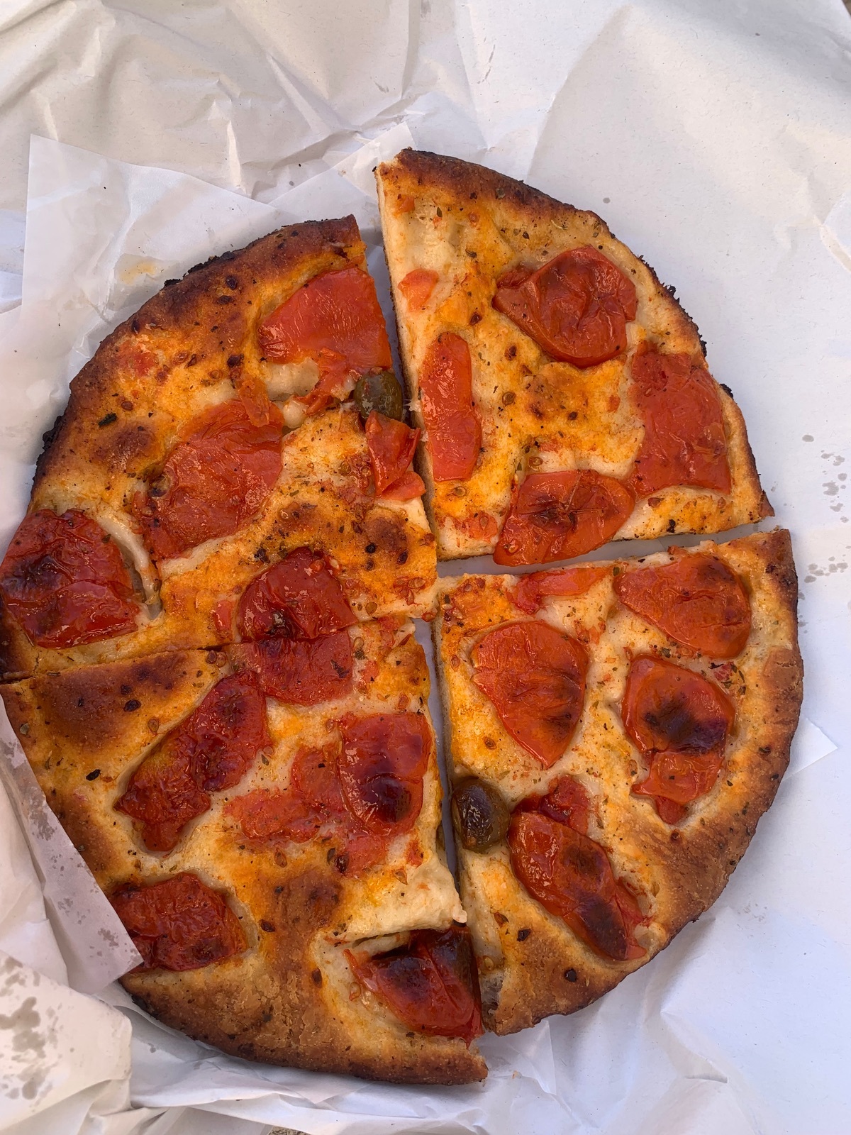 Also der Laden ist schon berühmt und lohnt sich angeblich auch anstehen. Ein kleiner Bäcker und focaccia frisch gebacken. An der Tür steht sogar ein Mann der alles regelt .