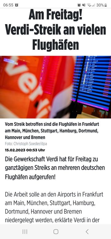 Der Streik soll laut Flughafen Website am Freitag sein. Hoffe das es bis 11.40 wieder ziemlich normal läuft. Nach dem IT Ausfall bei Lufthansa heute dann auch noch der Streik am Freitag