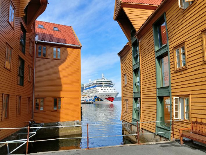 In Bergen bog MSC nach rechts ab, während AIDAdiva die "Pole Position" am "Bontelabo"-Kai genießen durfte.