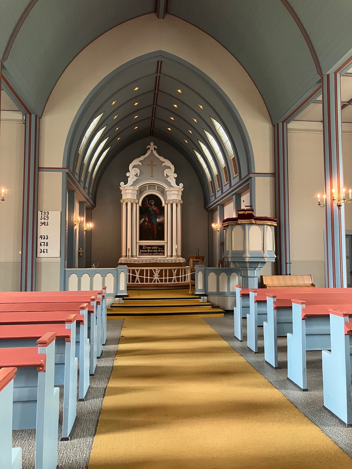 Die Hove Kirkje ist dagegen aus Stein und hat einen sehr freundlichen hellen Innenraum:
