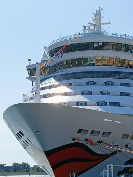 Hätte aber nix gebracht. Diese Reise wäre dann sicherlich meine letzte AIDA-Kreuzfahrt gewesen.Portia ging früher von Bord. Ich stand da zufällig am Burg und entdeckte sie in der Menge. Eine kurze WhatsApp und schon winkten wir uns zu. Sie tief unten an Land und ich oben am Bug - bis sie mit ihrem Koffer um die Ecke verschwunden war.