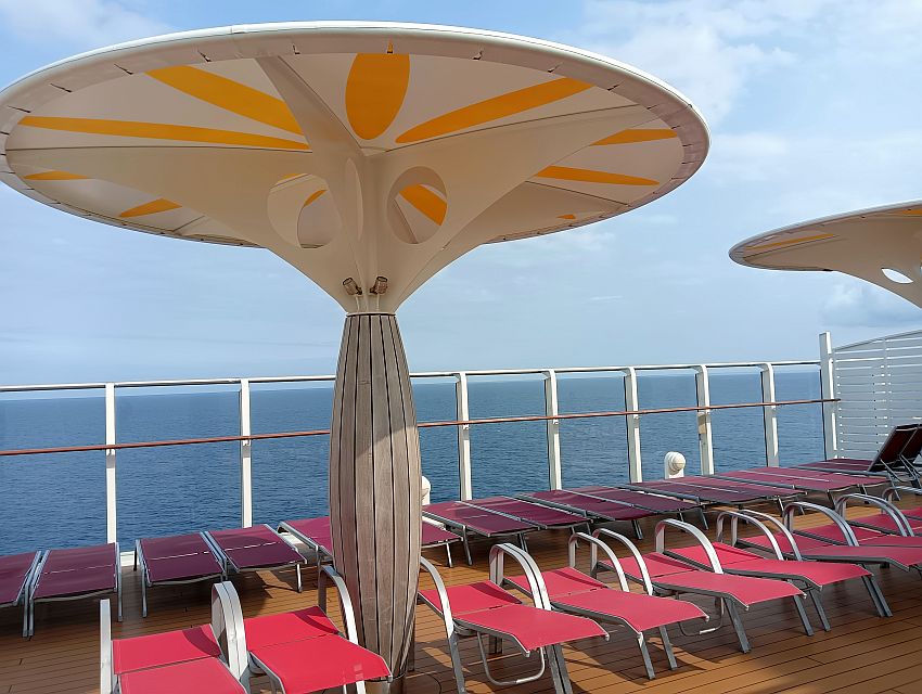 Nur werde ich kommende Nacht meine Balkontür wohl geschlossen lassen müssen, da der Wind ordentlich heult.Wenn mich dieser Seetag eines gelehrt dann: Wenn jemand sagt, er dreht mal ´ne Runde übers Deck, dann sieht man ihn frühestens in einer Stunde wieder, so groß ist alles.