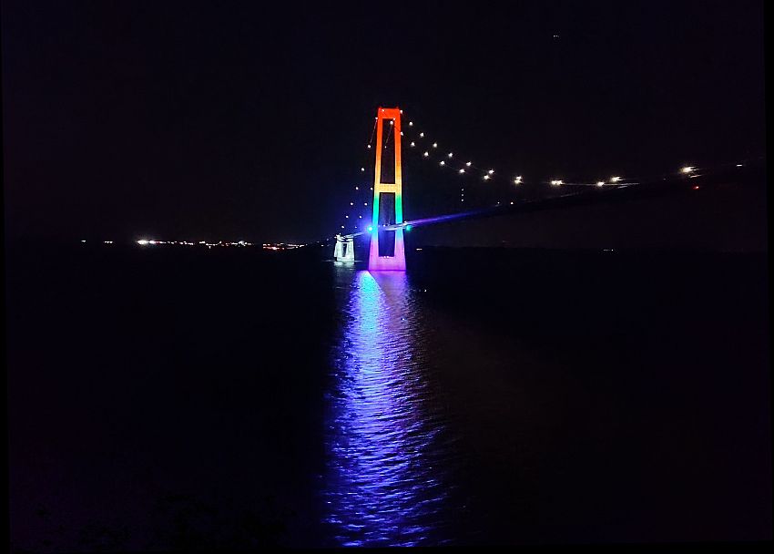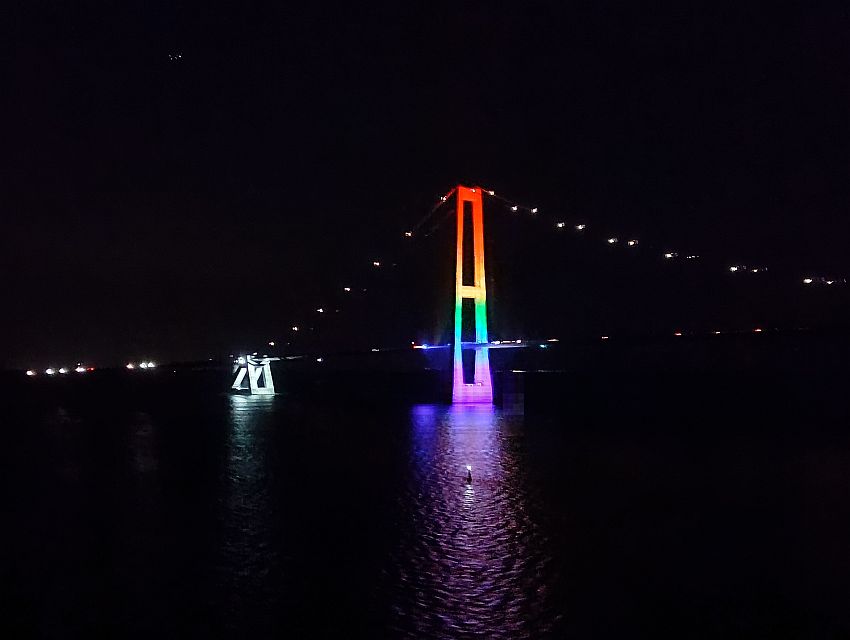 Bei unserer Durchfahrt der Brücke war sie letztes Jahr leider nicht so toll beleuchtet. Da hast Du wirklich Glück gehabt, sie so sehen zu können. 🤩 Im November fahren wir wieder ab Kiel. Vielleicht klappt es dann auch bei uns.