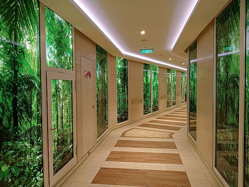 Ein leeres Theatrium am Seetagsmorgen gegen 8.15 UhrGrünes Deck 8