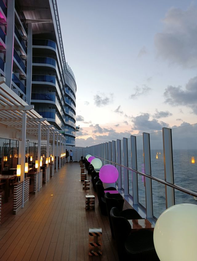 Nur werde ich kommende Nacht meine Balkontür wohl geschlossen lassen müssen, da der Wind ordentlich heult.Wenn mich dieser Seetag eines gelehrt dann: Wenn jemand sagt, er dreht mal ´ne Runde übers Deck, dann sieht man ihn frühestens in einer Stunde wieder, so groß ist alles.