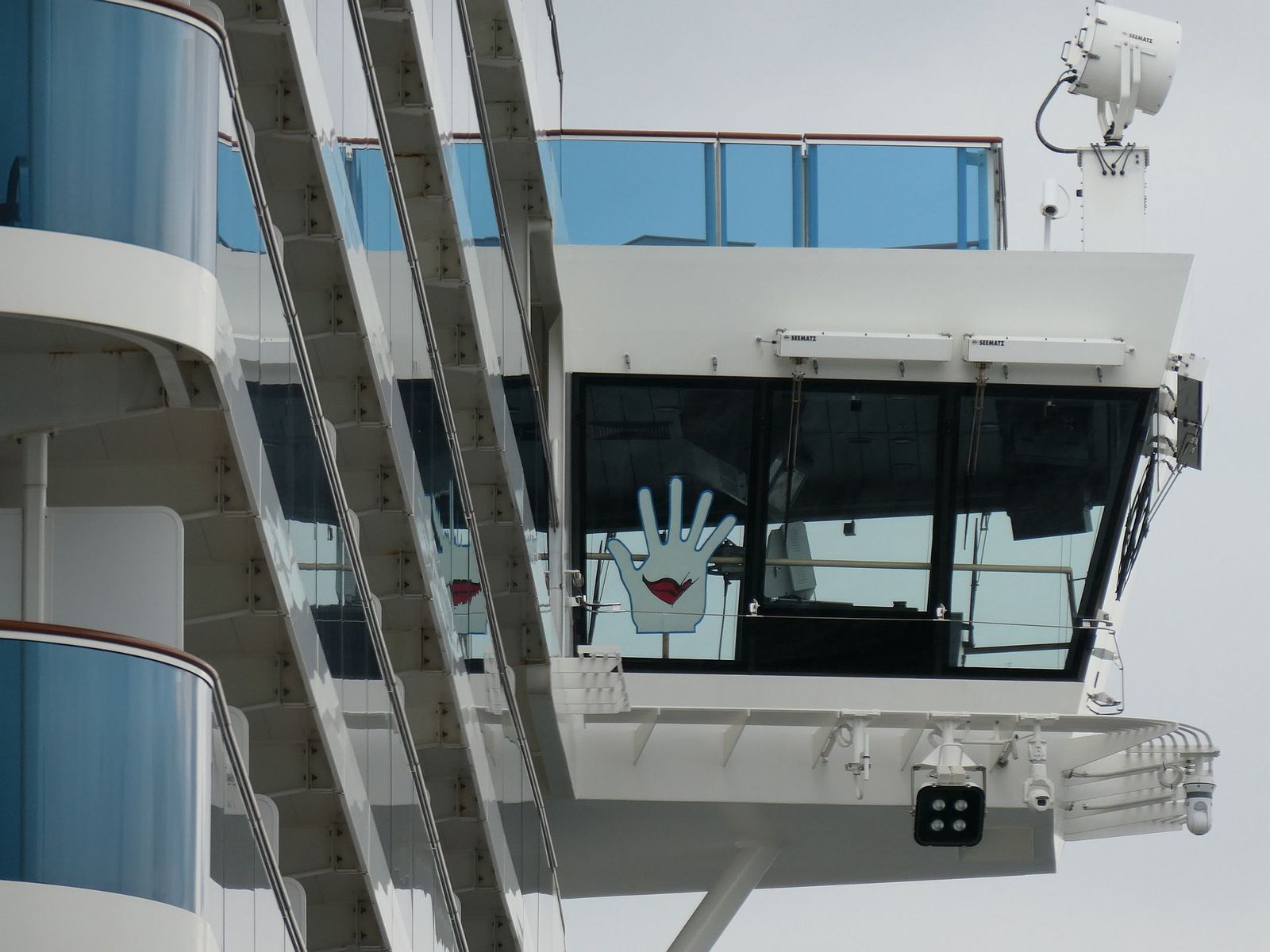 Und schlagartig habe ich mich noch viel wohler und besser gefühlt als ohnehin schon. Ich glaube, ich hatte heute den ganzen Tag so ein Dauergrinsen im Gesicht. Und da kommt man schon auch mal auf solche Ideen wie diese hier, als ich einem der beiden "E.T."s an AIDAnovas Heck kurzerhand auch zu einem Lächeln verholfen habe: