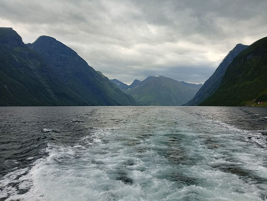 Zeitweise war es so schlimm, dass die Landschaft hinter einer dicken Regenwand vorübergehend fast komplett verschwand. Das hatte ich nun wirklich nicht verdient. Die einzige Fjordpassage dieser Reise war mir nicht vergönnt. :traurig:
