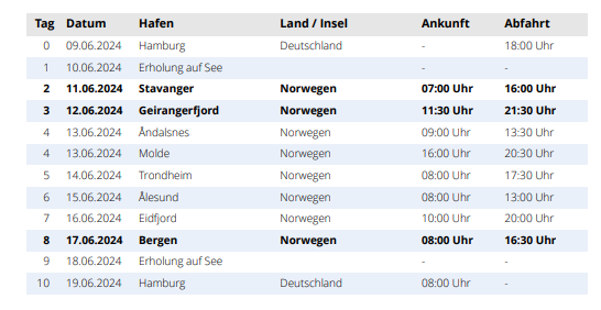 Also ich bin mit dieser Route mehr als zufrieden. Stavanger zu Beginn gleich, da sind wir noch frisch und „unverbraucht“ für den Preikestolen 😂 hab gestern übrigens nochmal eine von unseren Reiseweibern gefragt, die im Mai die Aida geführte Wanderung dort hoch gemacht haben. Wir schaffen das - kurze und schnelle Einschätzung.