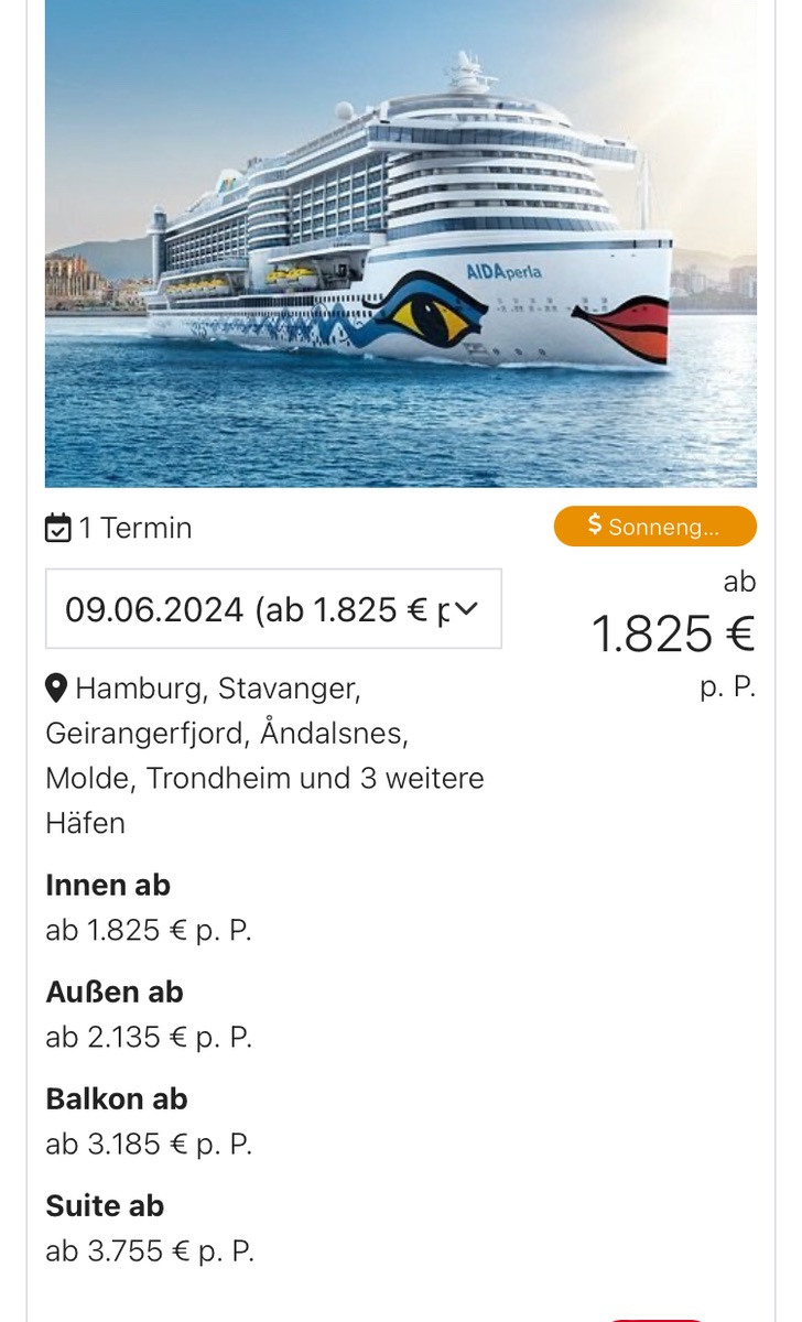 - RE: AIDAperla: Norwegens Fjorde ab Hamburg | 10 Nächte | 09.06.2024 bis 19.06.2024 (Sonntag, 9. Juni 2024, 00:00-Mittwoch, 19. Juni 2024, 00:00)